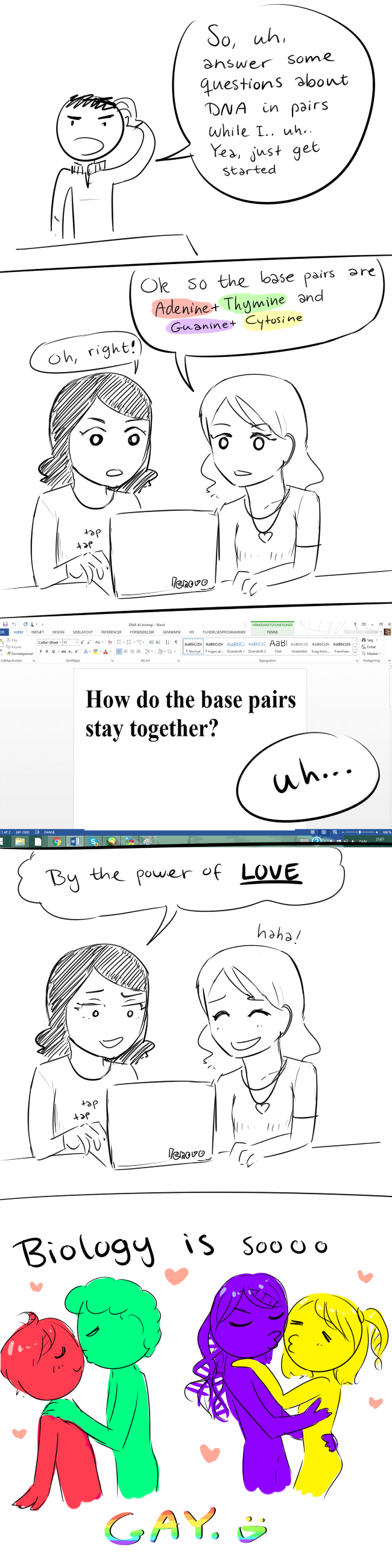 *the base pairs stays together with hydrogen bonds :D