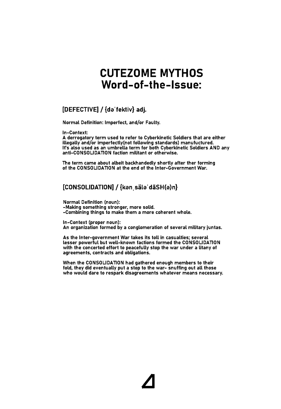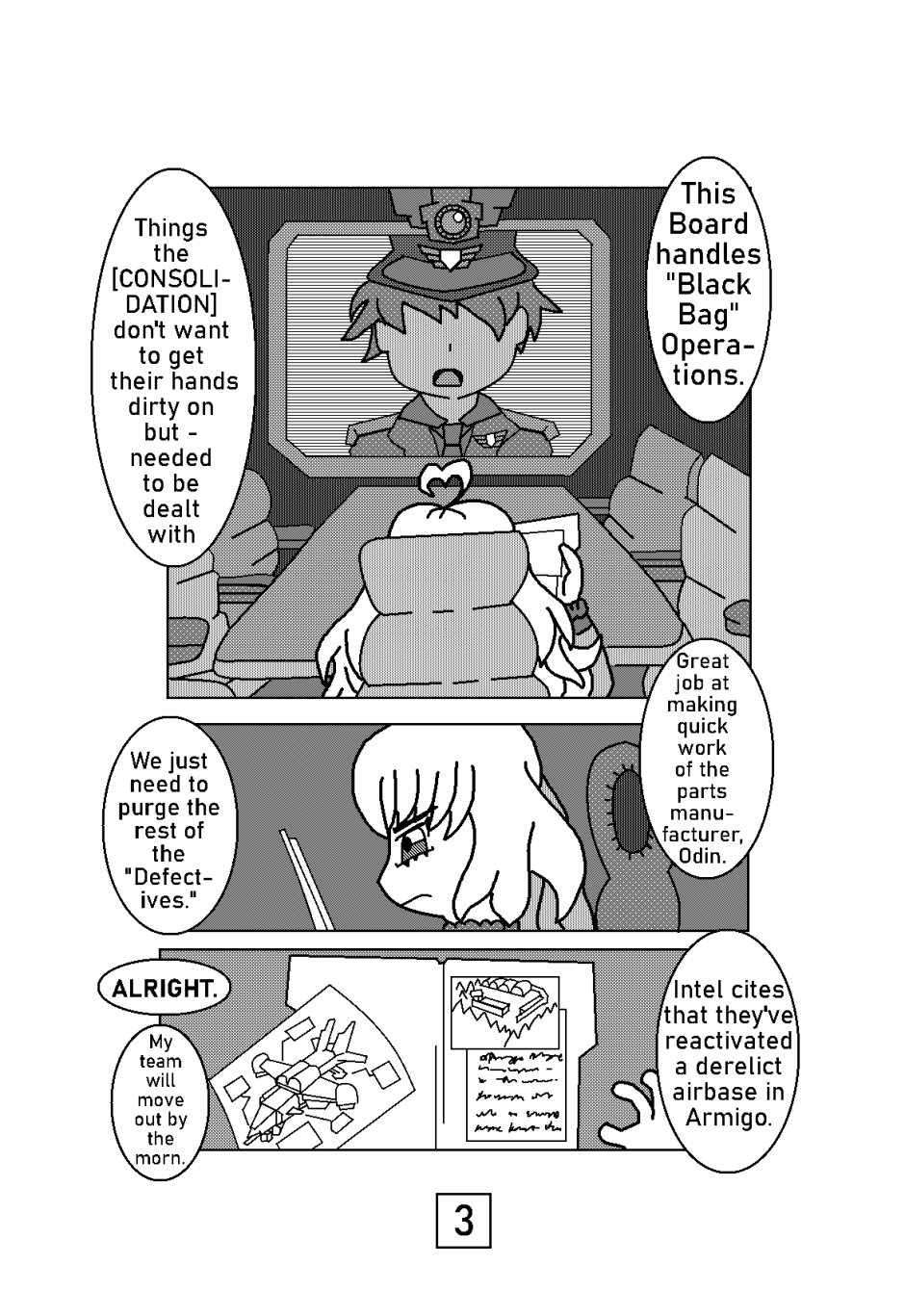 Their task to eliminate all trace of the stolen project, recover any useful research data and plans regarding the project and, destroy both the production facility and all of the [Defective]'s prototypes.