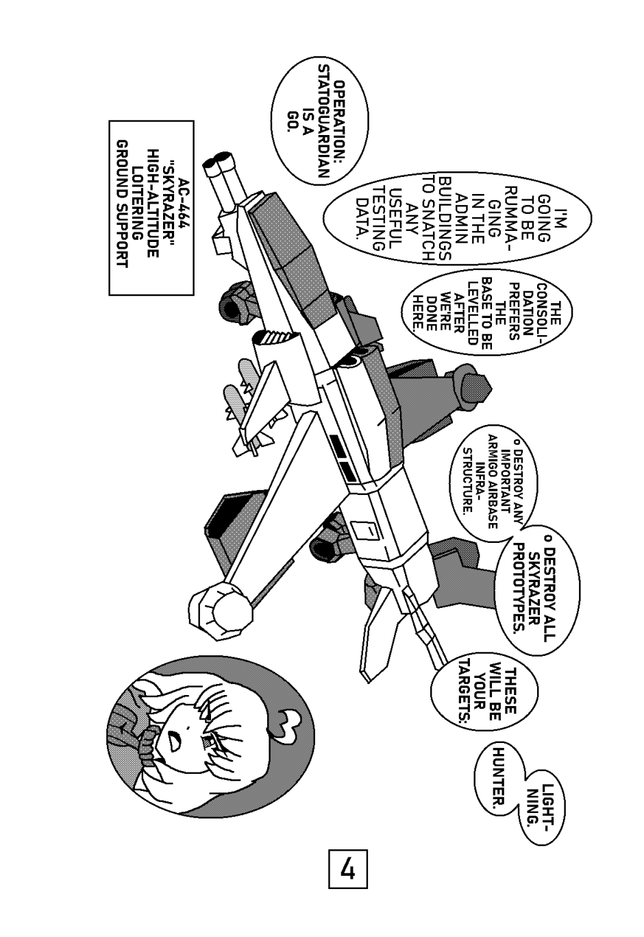 The Board of Secret Actions has been tasked at taking out a group of [Defectives] who've acquired stolen weapons tech for a Loitering Ground Support Aircraft known as the [Skyrazer].