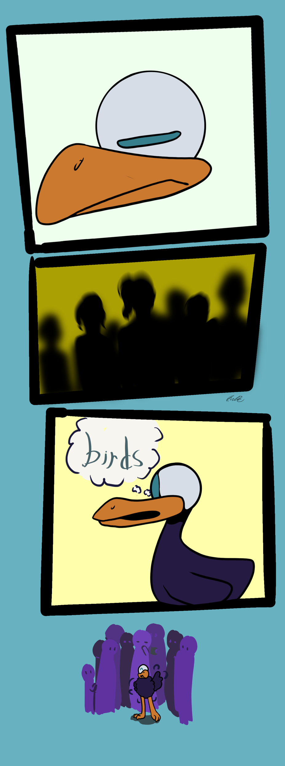 The bird is blind. Thinking that everyone is in fact birds they vibe.
