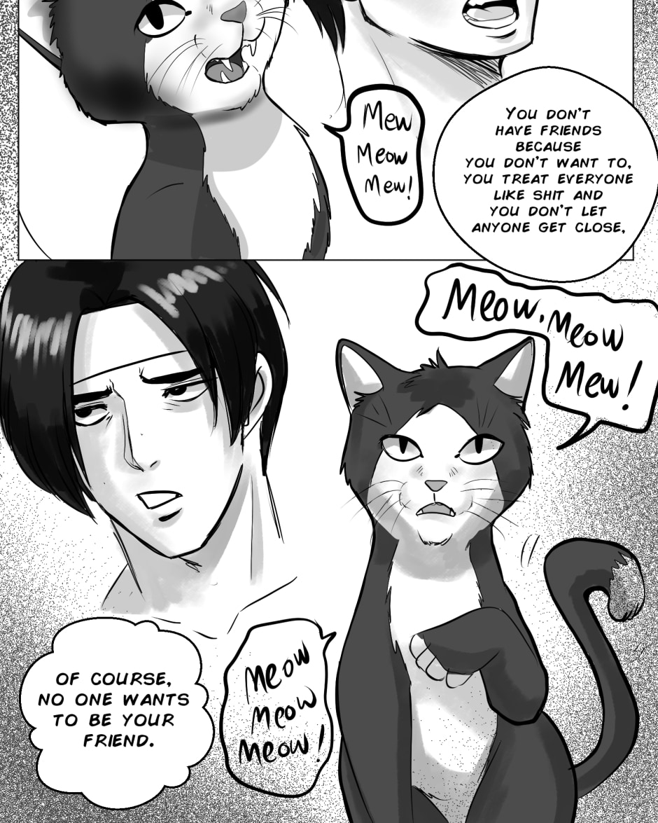 On a rainy night Kyo wakes up in an unfamiliar apartment and realizes he has become a cat. His nightmare begins when Iori appears...