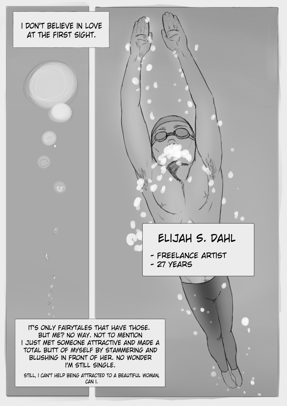 In this comic, you get to witness the struggles of Elijah, a young man who fancies the new curator of the art gallery he works at.
