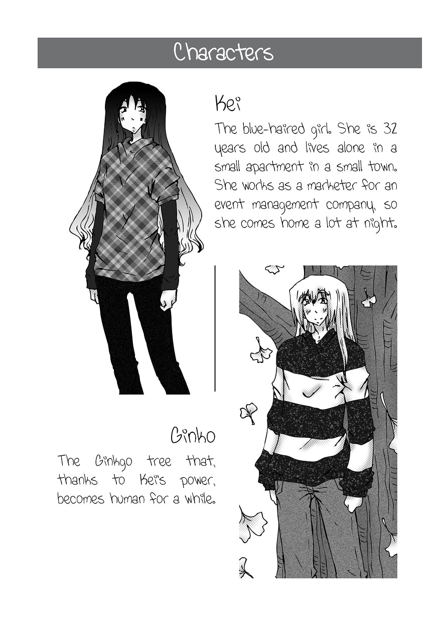 - The blue haired girl and the gingko tree -