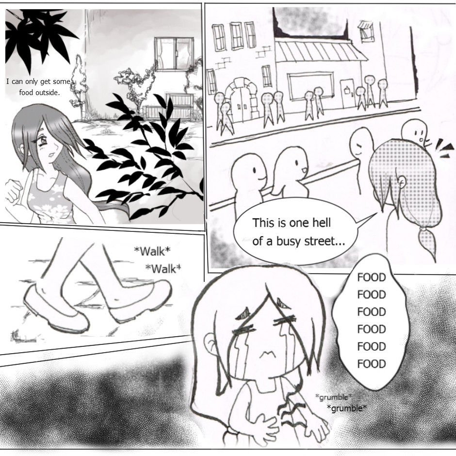 She's hungry so she need to look for food to fill her in. But she obtain something from a stranger instead. NOTE: I'm trying to redraw this comics, sorry if it takes too long for me to update this comics after 3 years of HIATUS CX