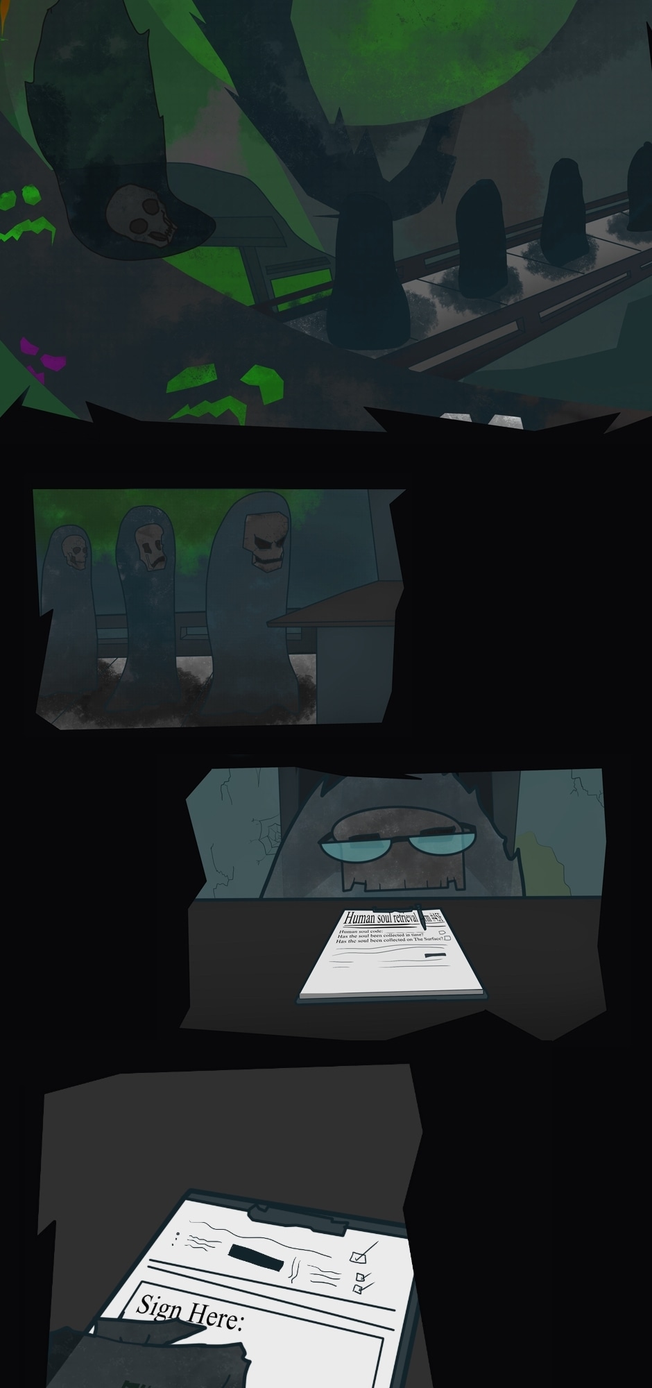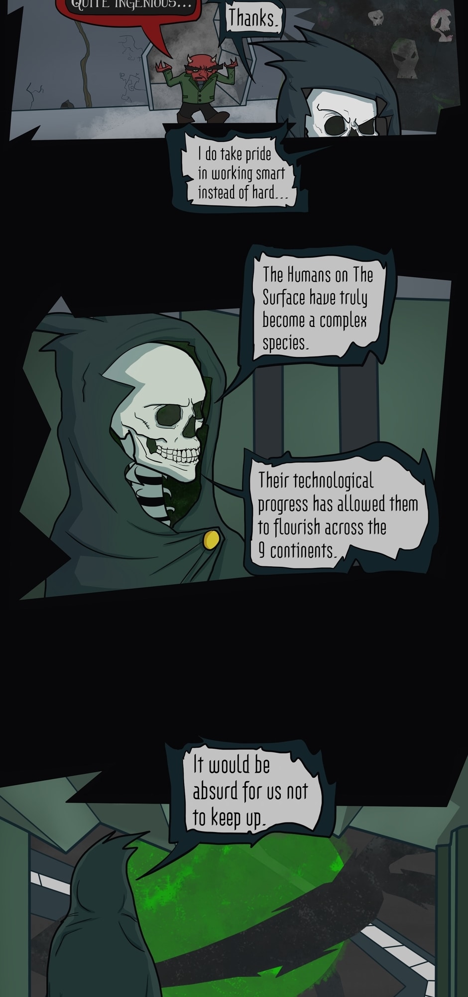 Athan and Coilean (a.k.a. BoneFace and PumpkinHead) are two monsters from The Kato Kosmos. They must go to The Surface to make sure a catastrophic event doesn't take place when The Humans decide to attempt to reach immortality through the means of magic and science.