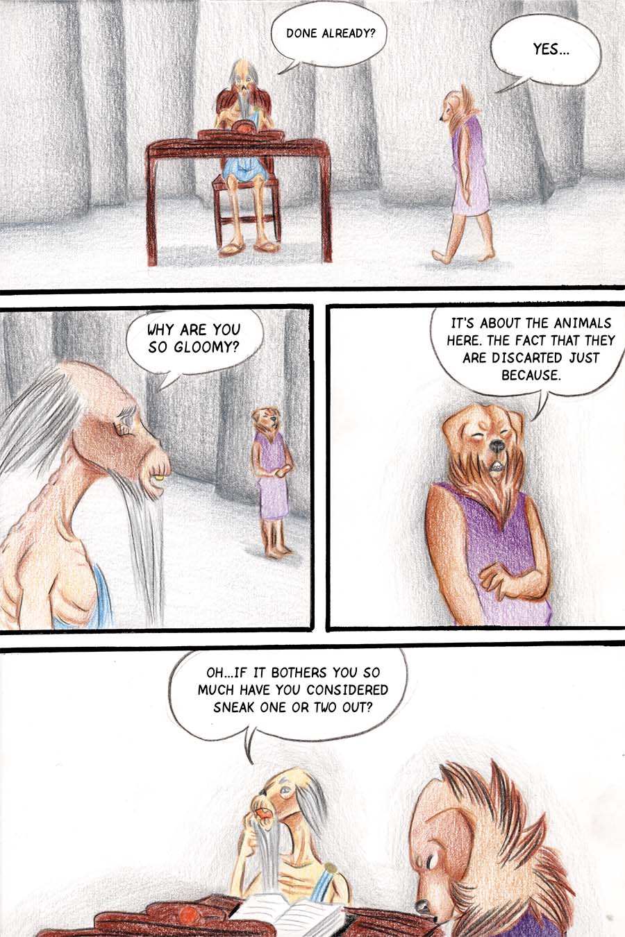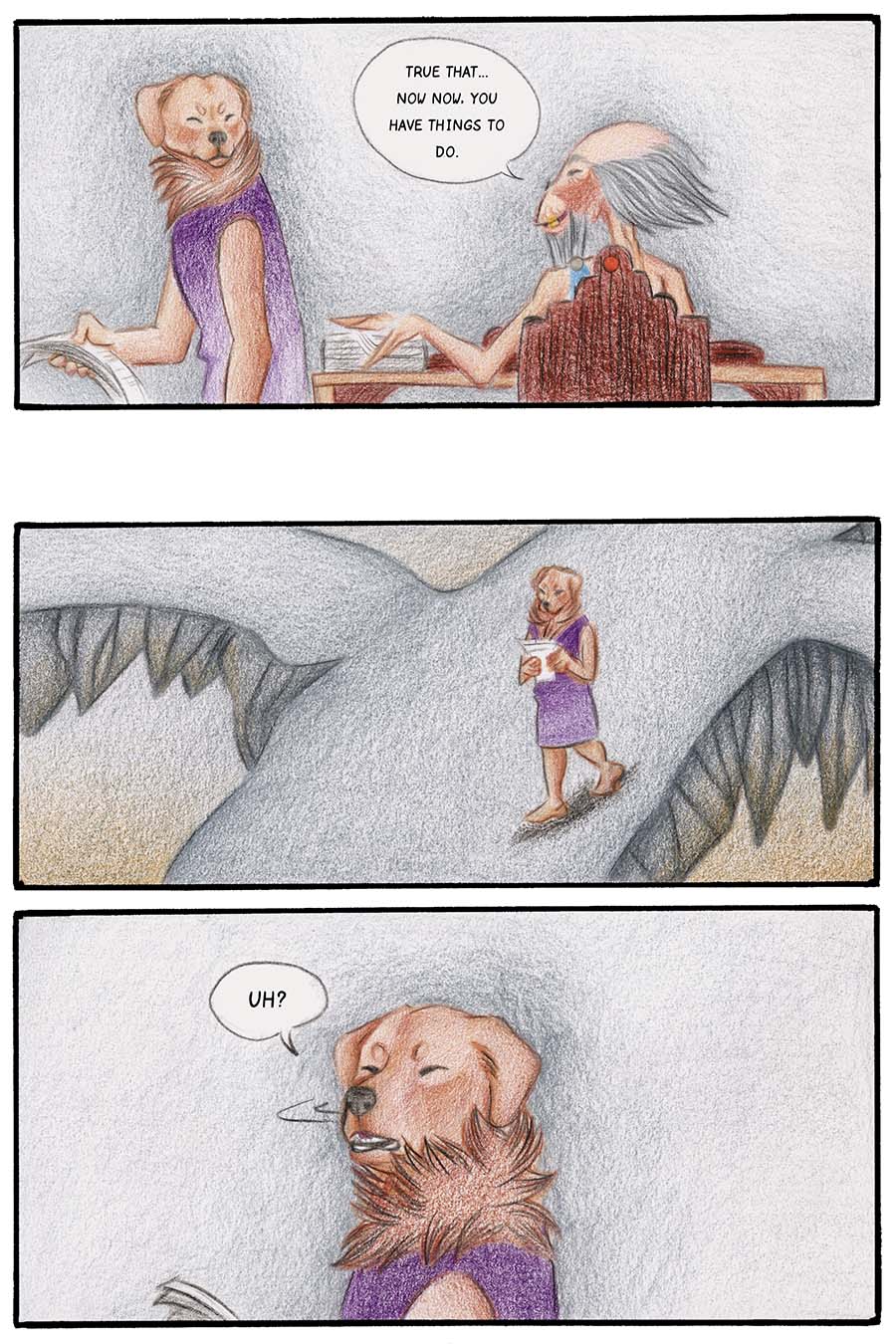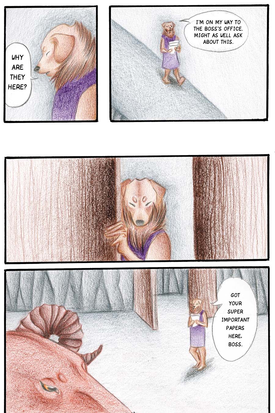 Borkatory is a fun comic about Cookie, a Golden Retriever whom dislikes how the Underworld treats the souls of deceased animals. Cookie wants to know the reason behind their mistreatment and goes investigate this issue.