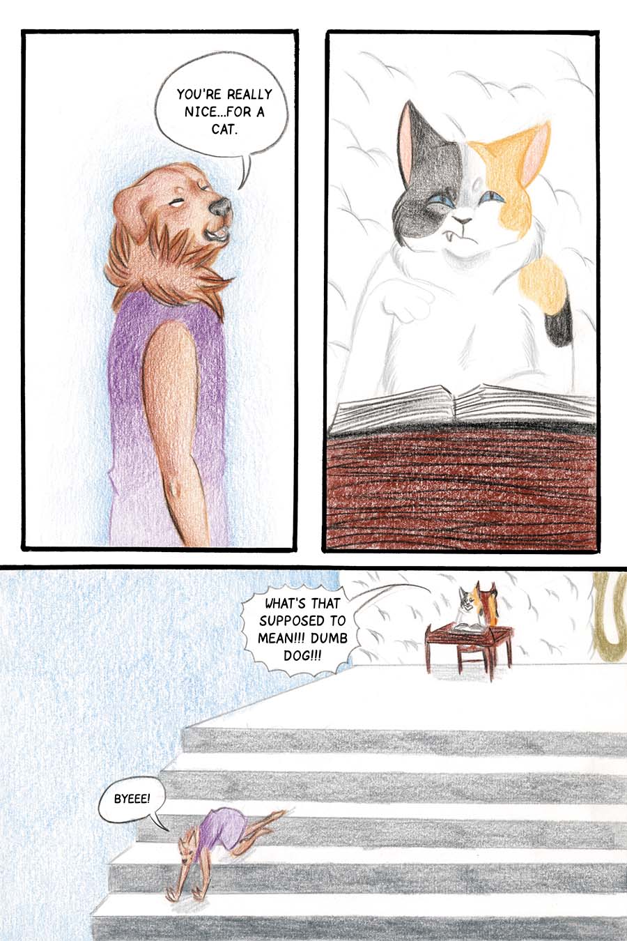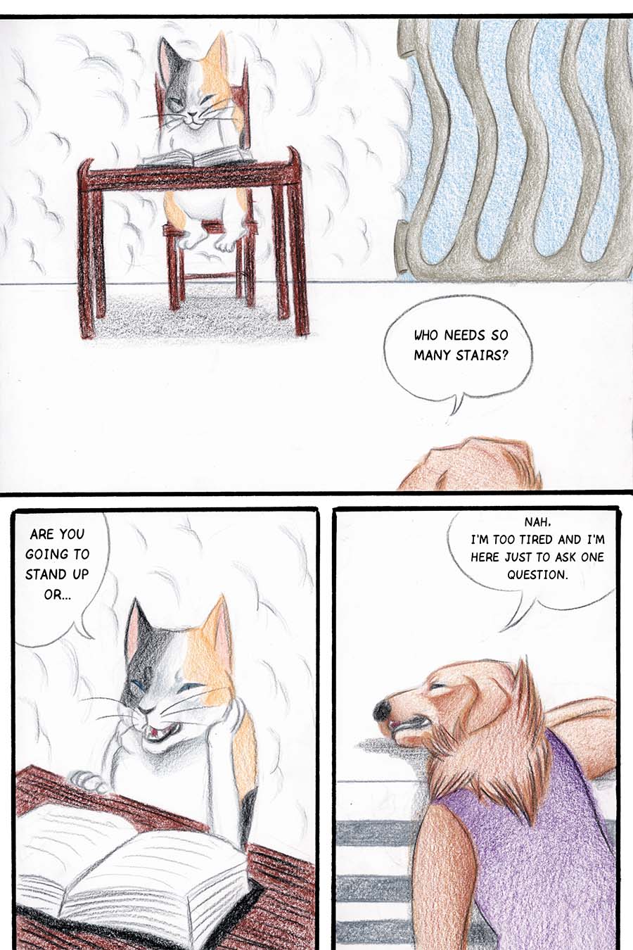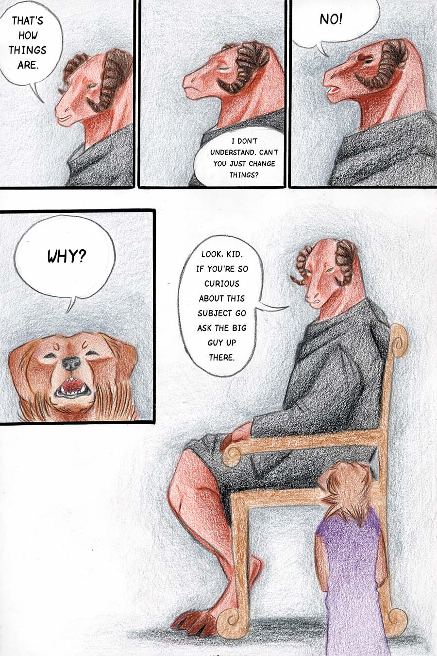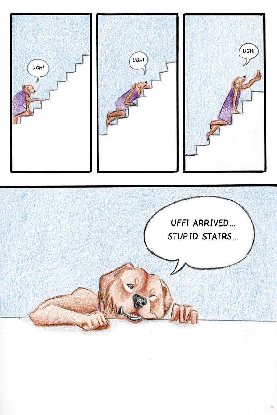 Borkatory is a fun comic about Cookie, a Golden Retriever whom dislikes how the Underworld treats the souls of deceased animals. Cookie wants to know the reason behind their mistreatment and goes investigate this issue.
