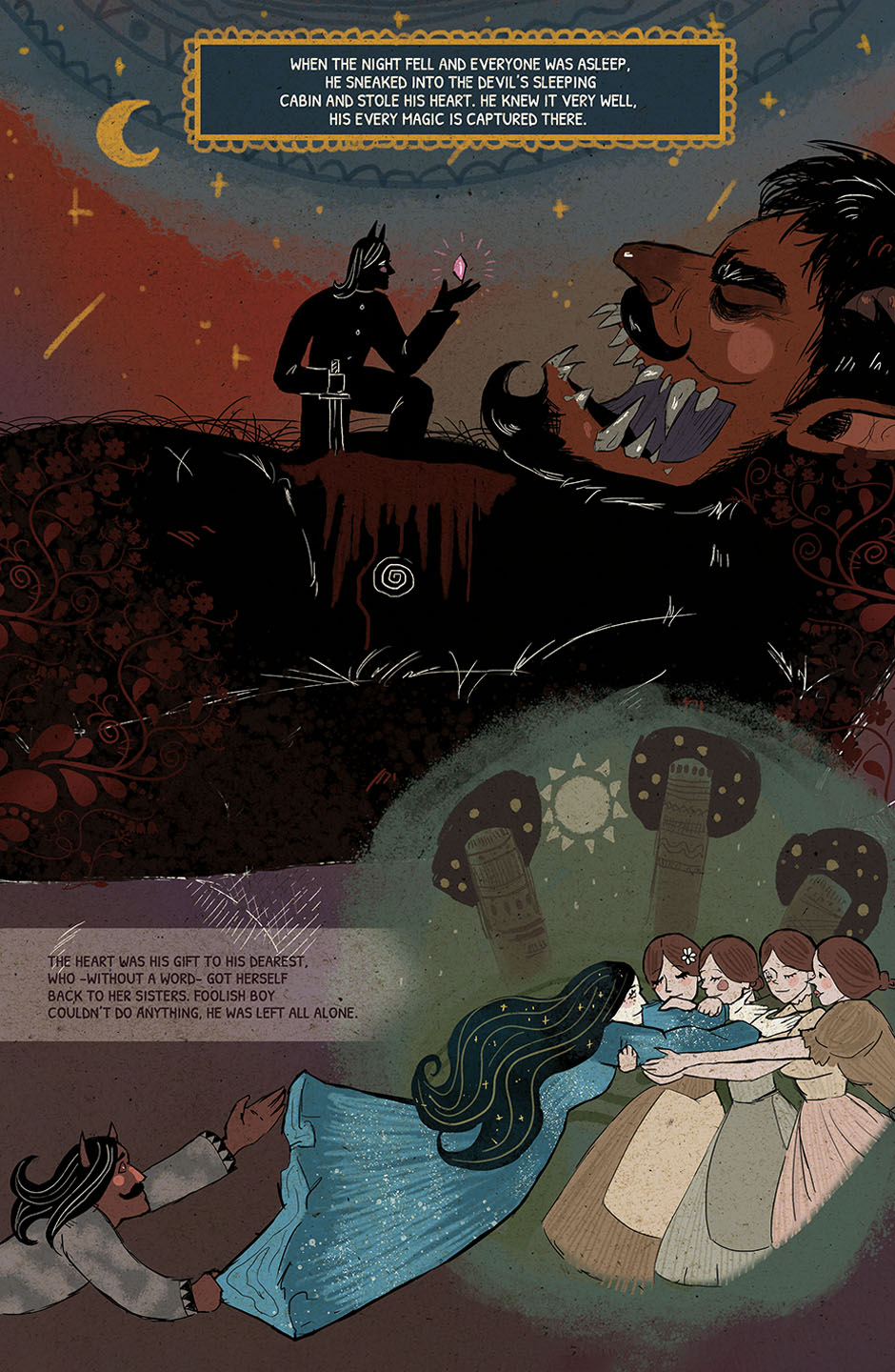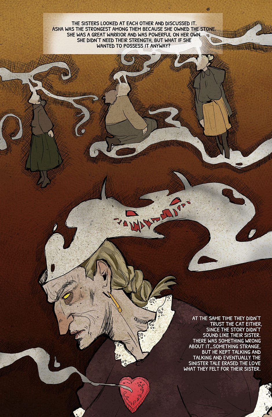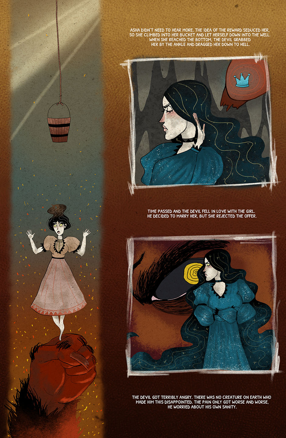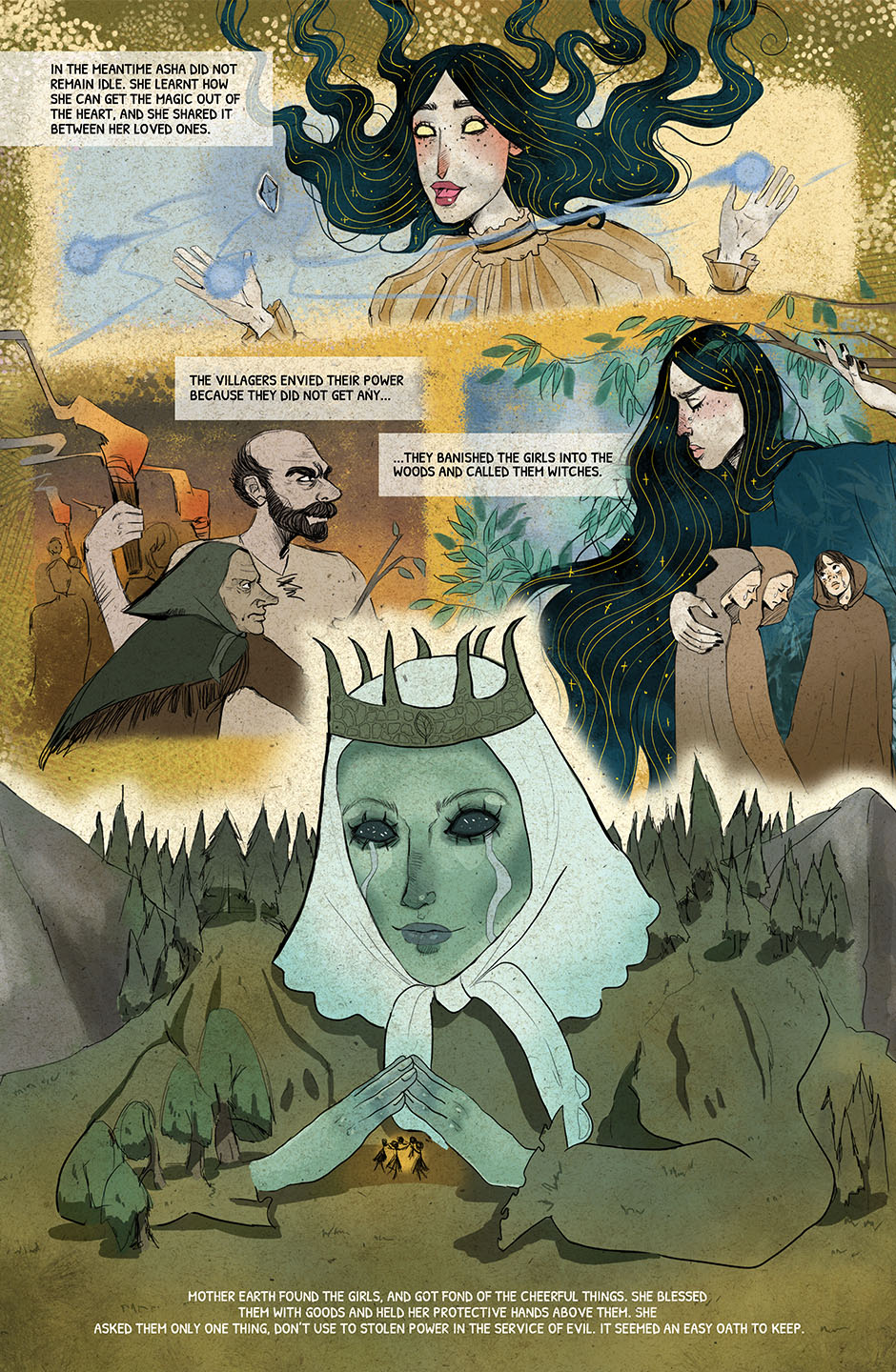 This is a story about the old time's witches who ruled the world. They are destroyed by a bigger power and there is a little girl who is bored with rules and walks her own way. She tries to save her mother because her mother is the only one who can take back the power from evil. The only problem is nobody knows how to set her free from the glass dome where they were locked up... The story is coming soon. :)