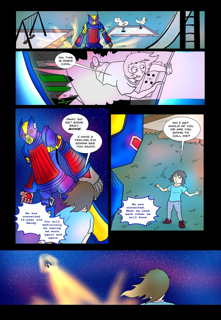 A giant robot falls to earth and 14 year old Mandy stumbles across it and her life is changed forever.
