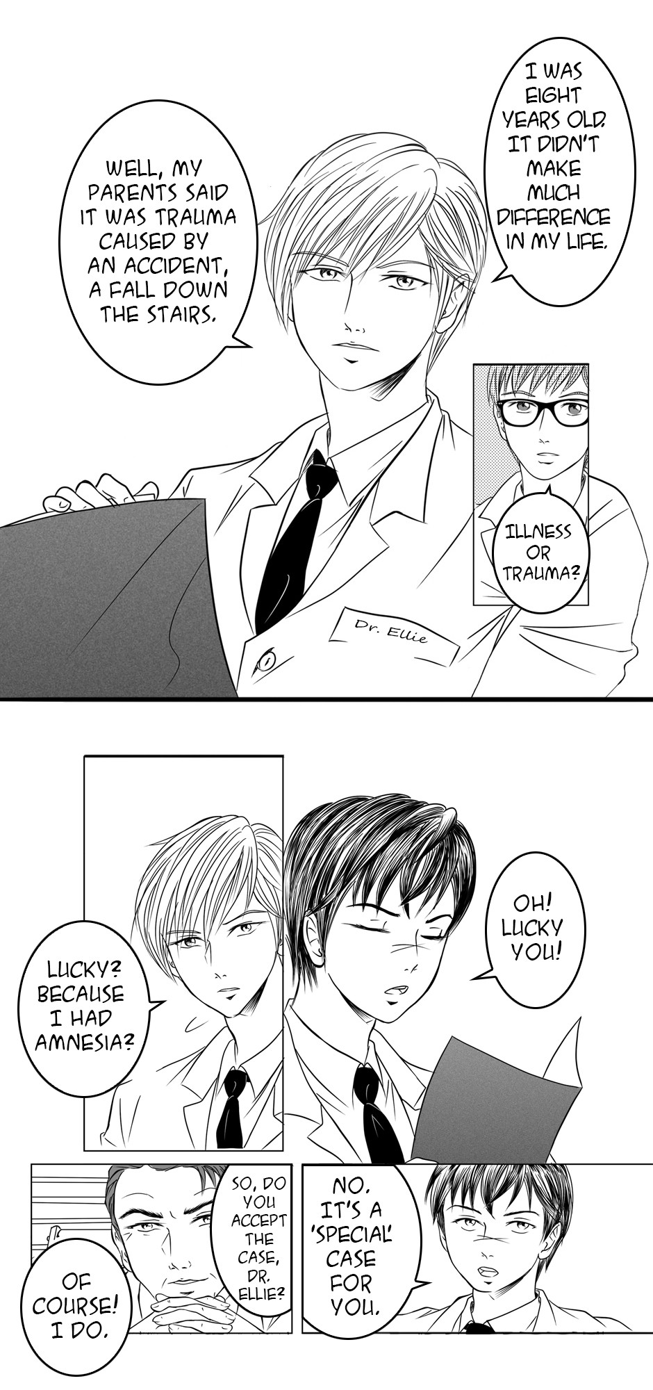 The young and promising psychiatrist, Dr. Ellie, receives a delicate mission: to treat a patient who has total amnesia. The patient in question is a rebellious teenager, yet very handsome, but who hates psychiatrists. To make matters worse, Ellie is forced to return to their hometown, where they swore never to set foot again, and begins to feel attracted to their patient. Now, Ellie needs to help Boy X recover his memories, face their own past as well, and maintain professional ethics.