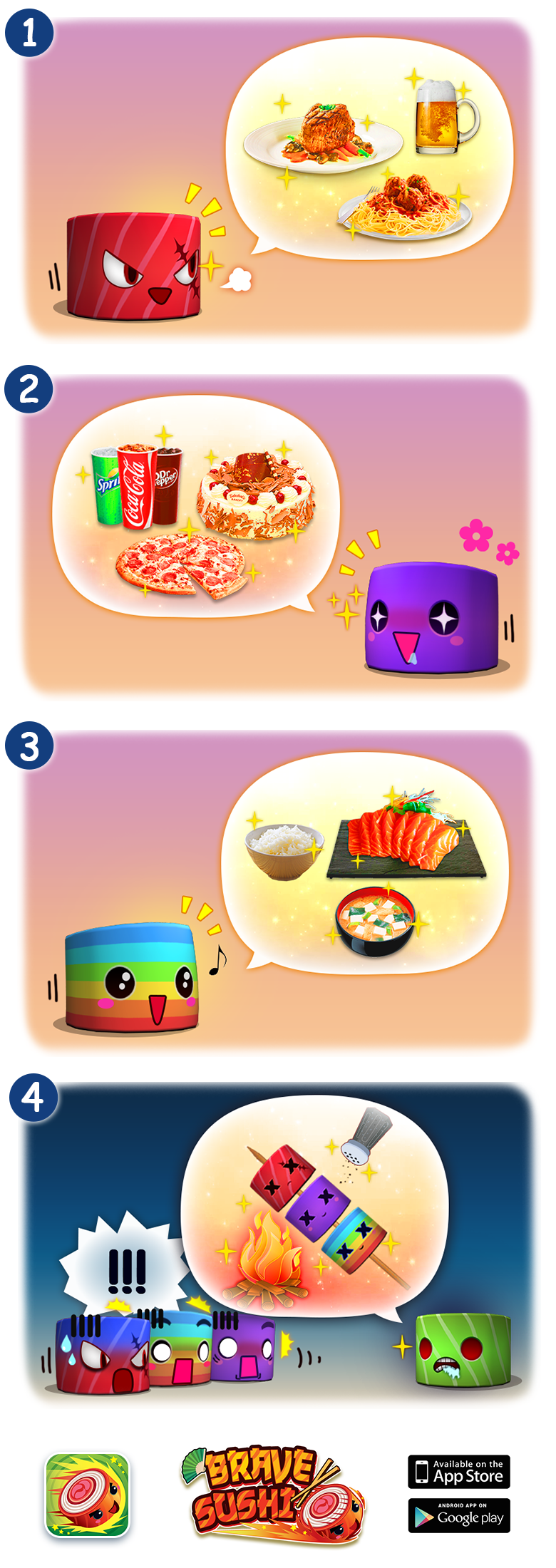 Brave Sushi is our first run on 3D mobile game. Help guide your sushi across the endless conveyor in an attempt to escape his inevitable fate. Jump, dodge, and slide your way to survive as long as possible, with the occasional help from flavouring powers!