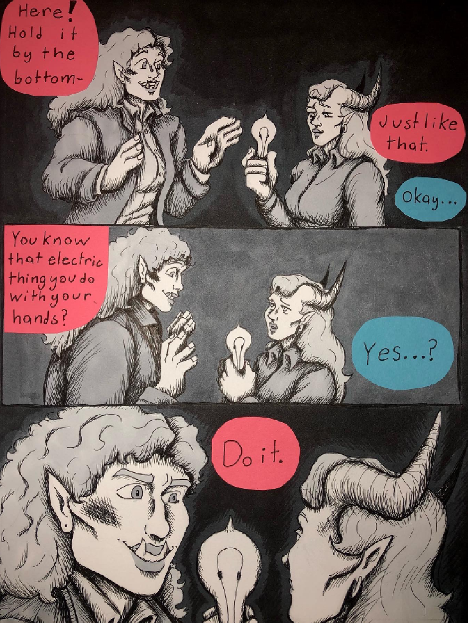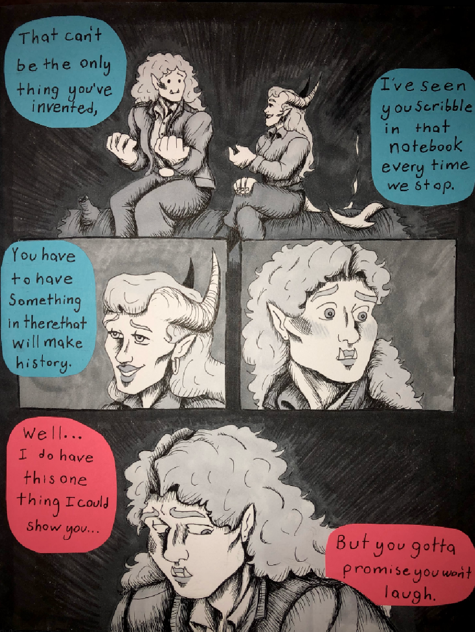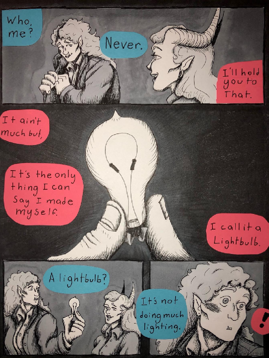 Sunny Brighttusk is a half-orc inventor eager to make a name for herself and her many, many inventions. Her dream of making something that will change the world is halted by an authoritarian mother, a cynical world, a mysterious past, and a tiefling. A gorgeous white tiefling by the name of Polaris Diamat, who beings an unlucky partnership with the dorky half-orc.