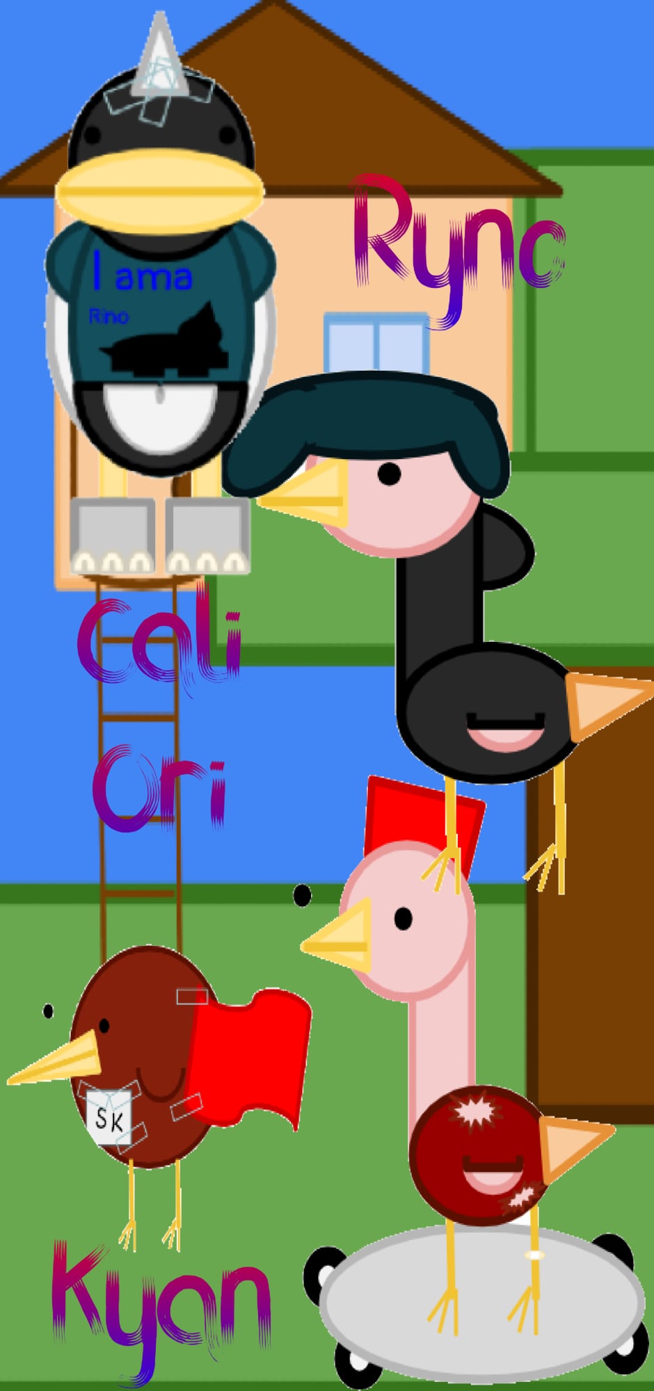 Just the main few characters of my series, however Bugsly the penguin calls himself Ryno, as he thinks he is a rhino.