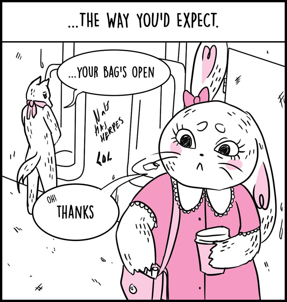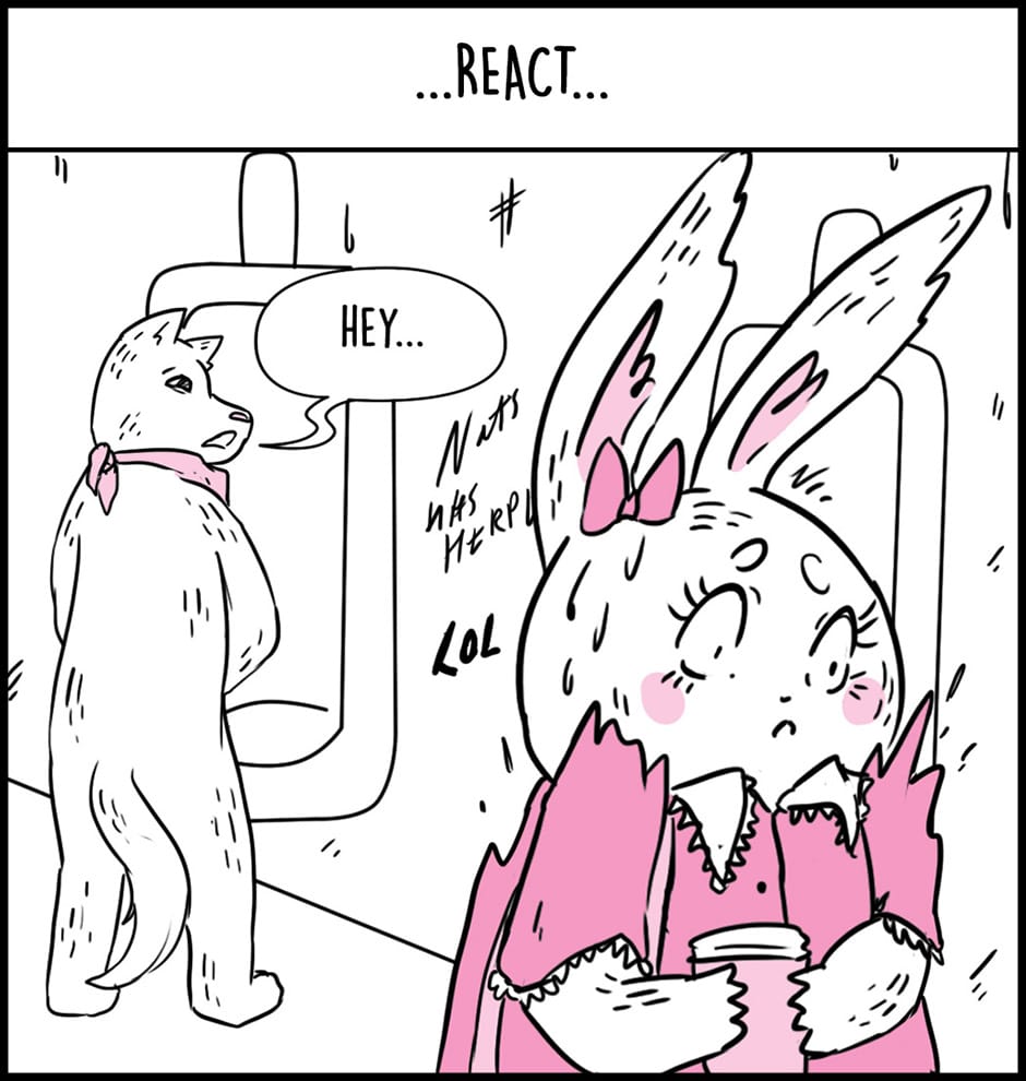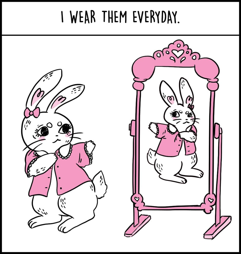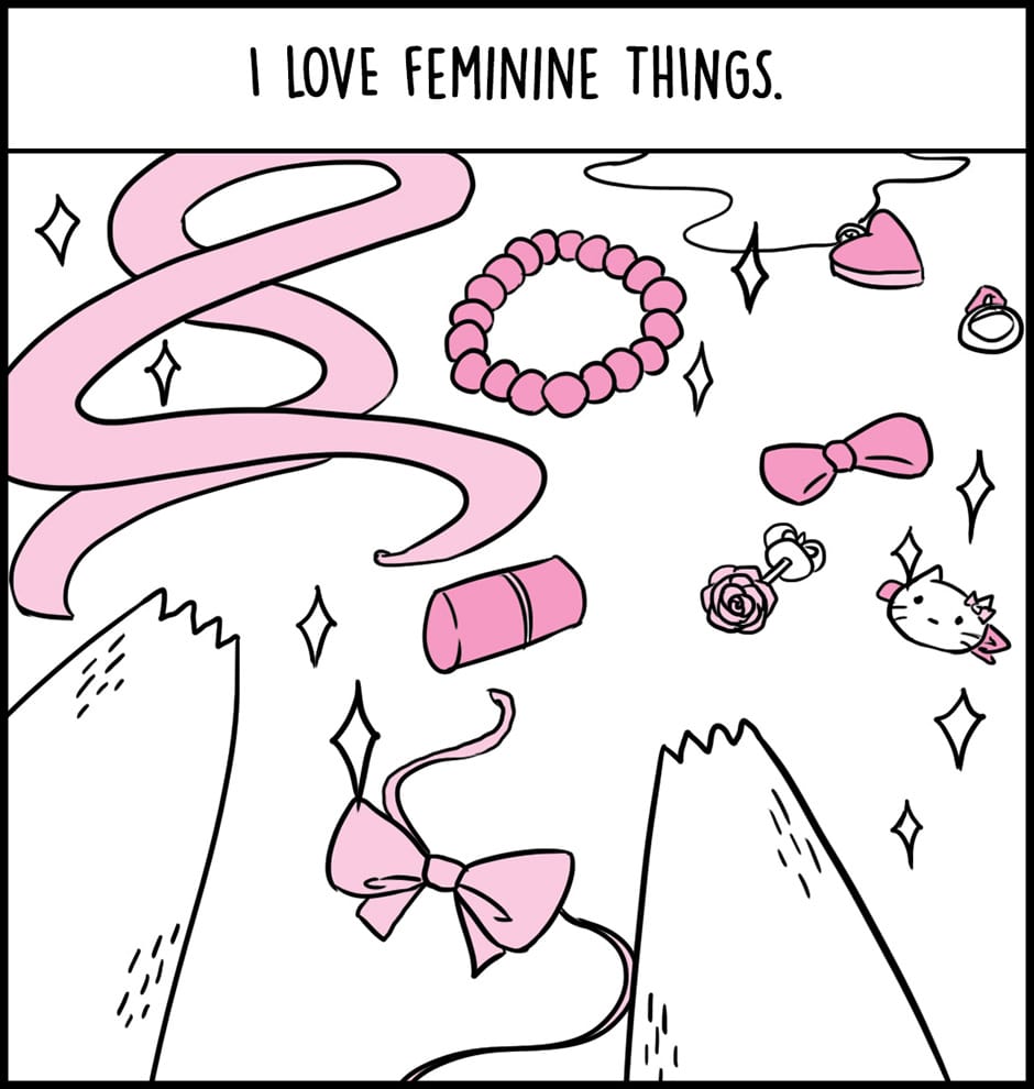Bunny is a comic that explores gender presentation from the perspective of a feminine transmasc male identifying rabbit, Bunny.