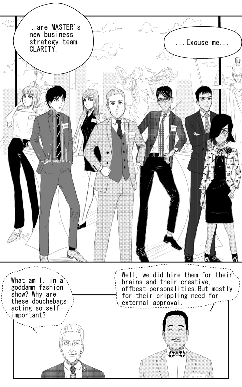 UPDATED WEEKLY UNLESS STATED OTHERWISE :) The MASTER corporation has hired a team of young and talented businesspeople from diverse backgrounds to guide its business strategy as it enters new industries. But is everything is as it seems? Hijinks and drama ensue as team CLARITY launches new businesses, while each member tries to make her and his way in the world! MORE INFO: https://cross-platform.co/business_samurai