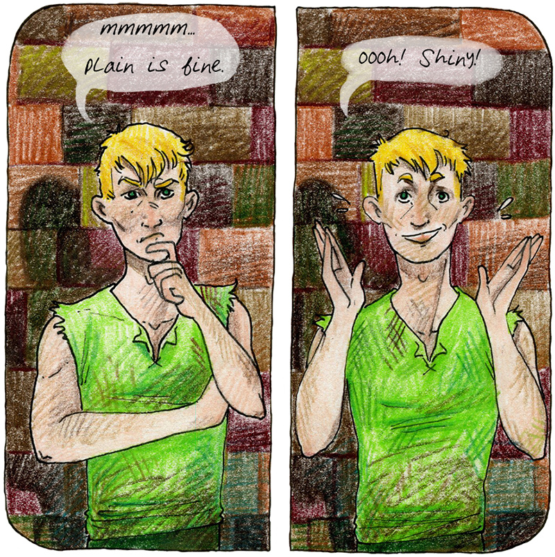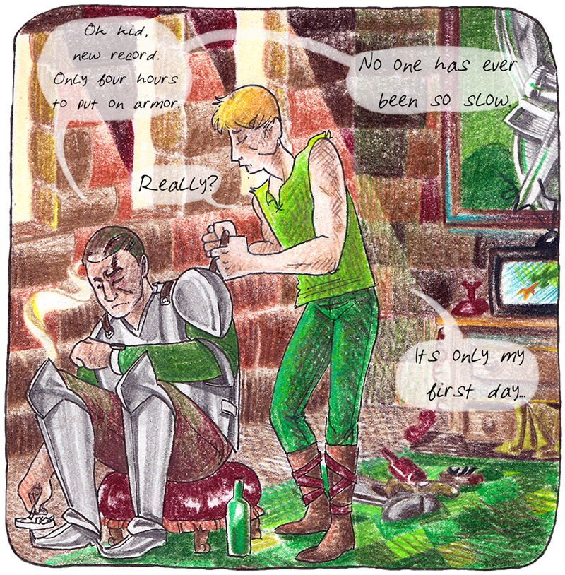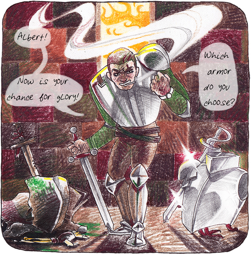 Start your adventure here! Which armor do you choose? Click on Chapter PLAIN for the plain armor. Click on Chapter SHINY for the breastplate.