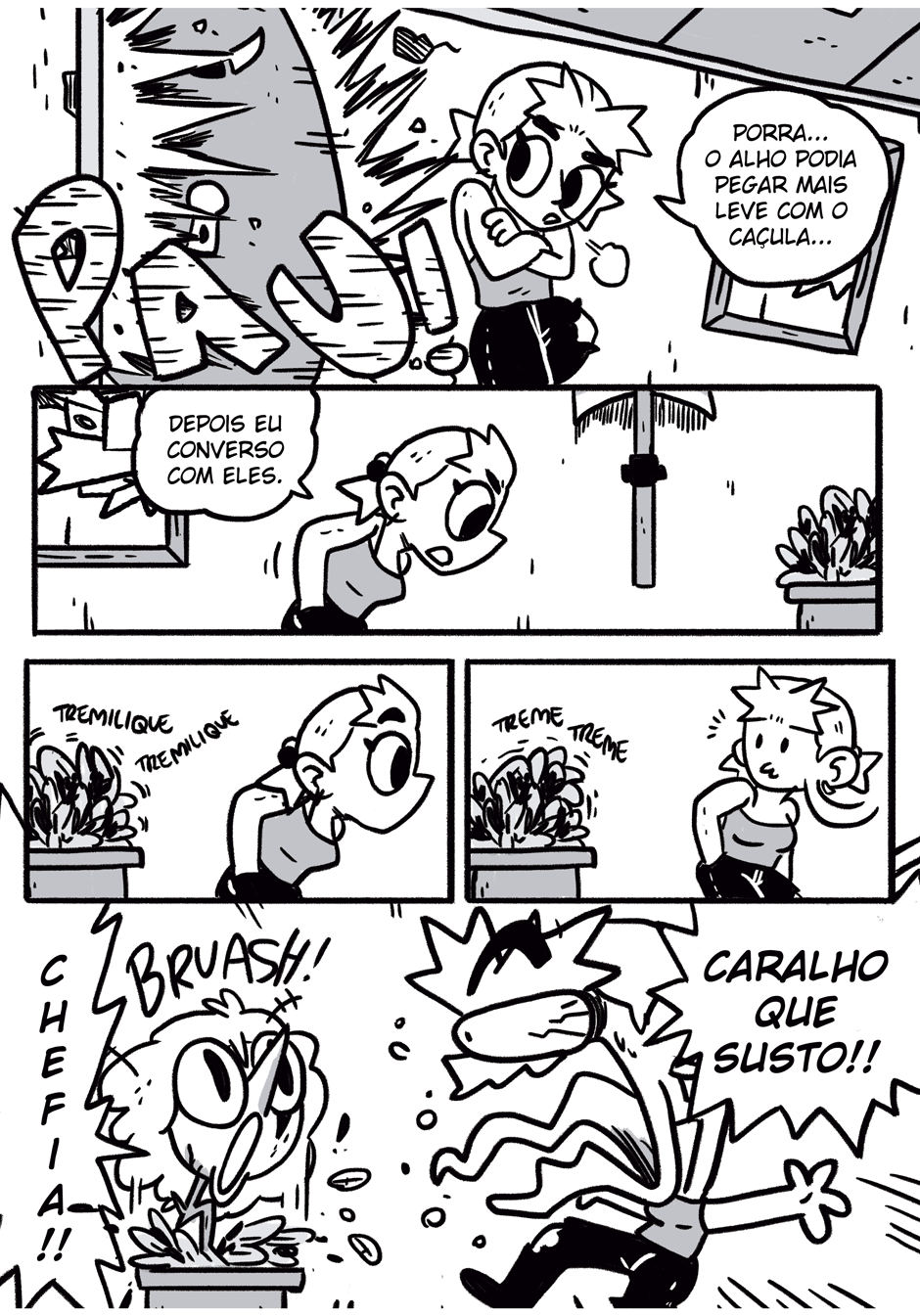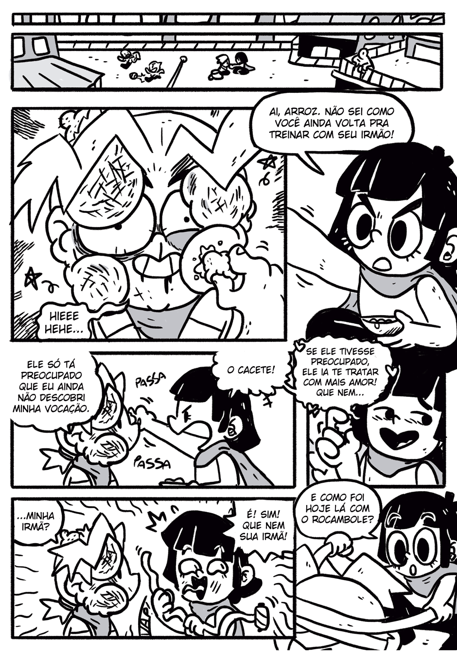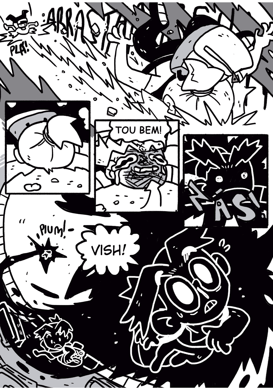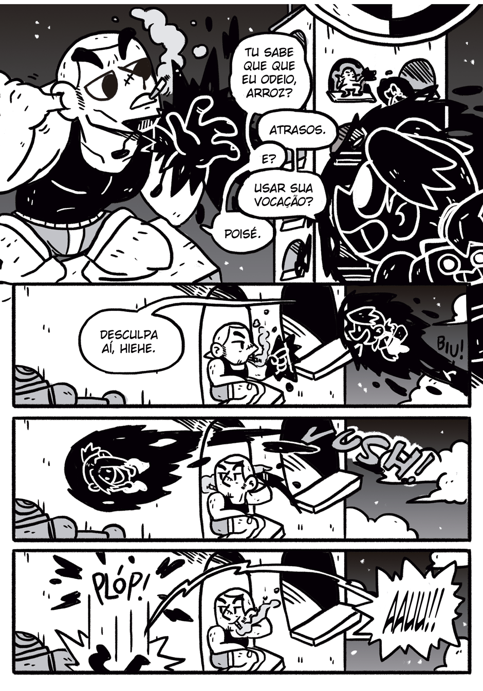 Teus quadrinhos tem uma coisa caótica que é muito massa, curti a história e me lembrou coisas de dr slump e produções da trigger, continue que tá muito engraçado e divertido hauahauaha