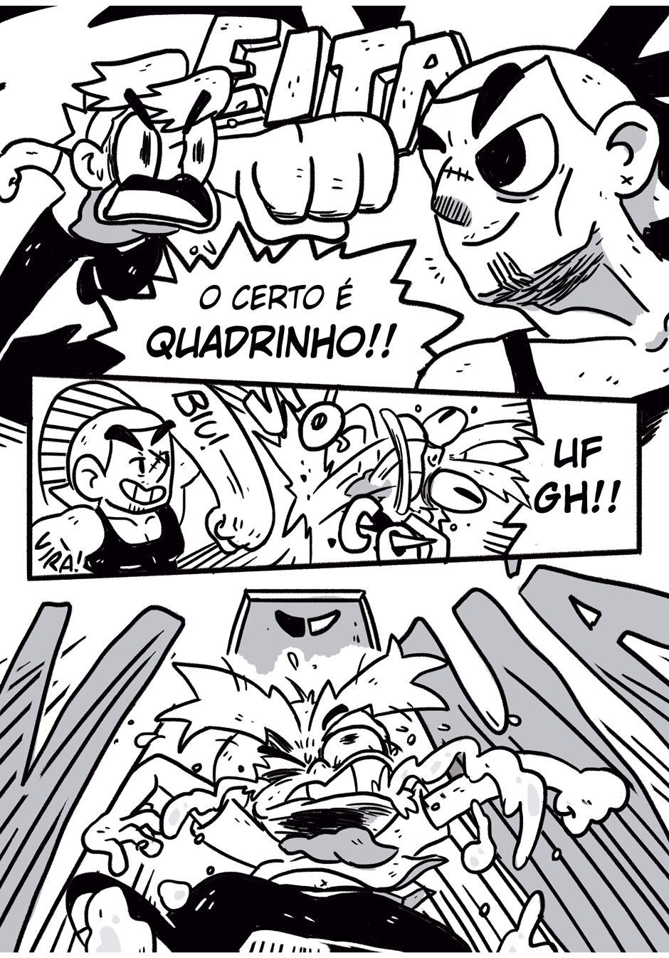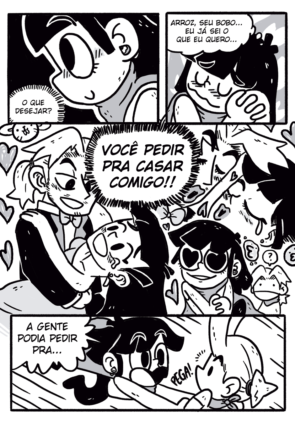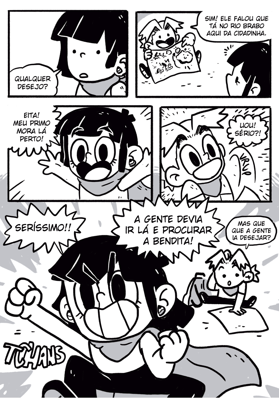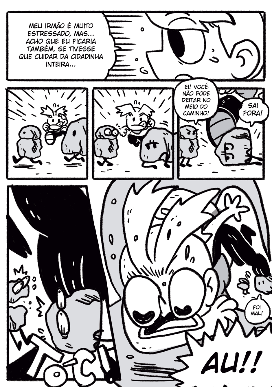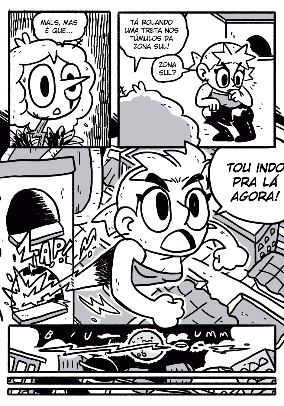 Teus quadrinhos tem uma coisa caótica que é muito massa, curti a história e me lembrou coisas de dr slump e produções da trigger, continue que tá muito engraçado e divertido hauahauaha