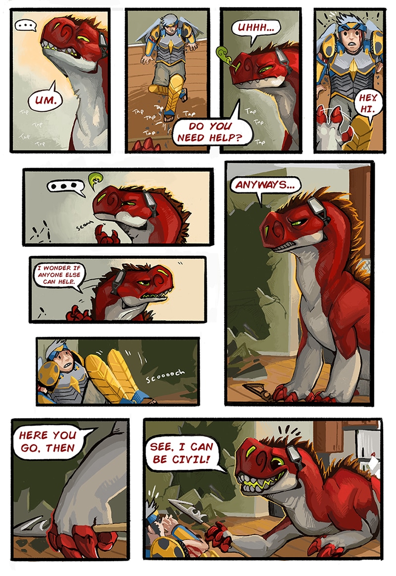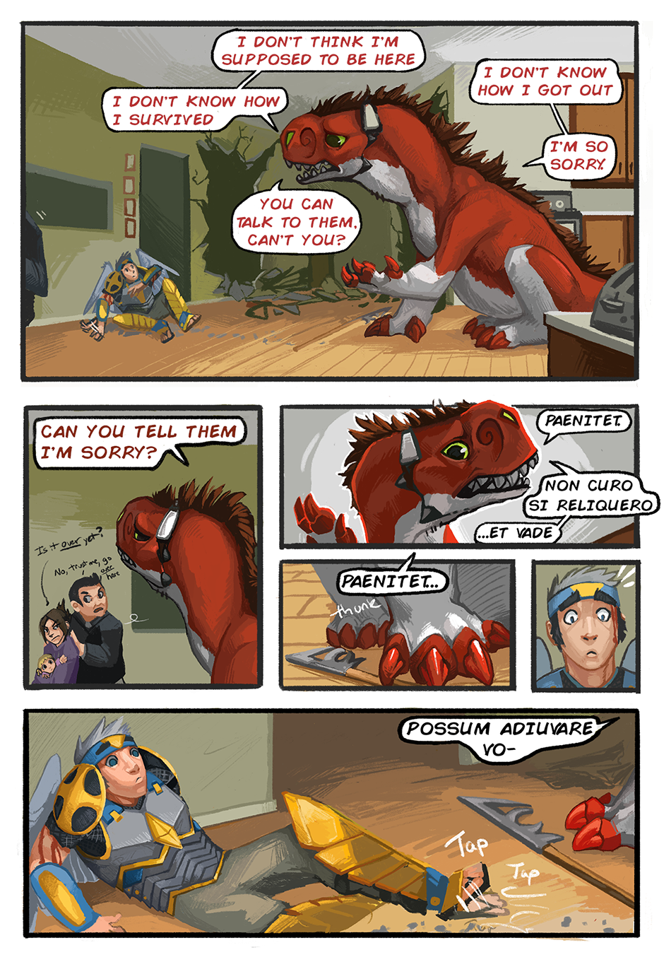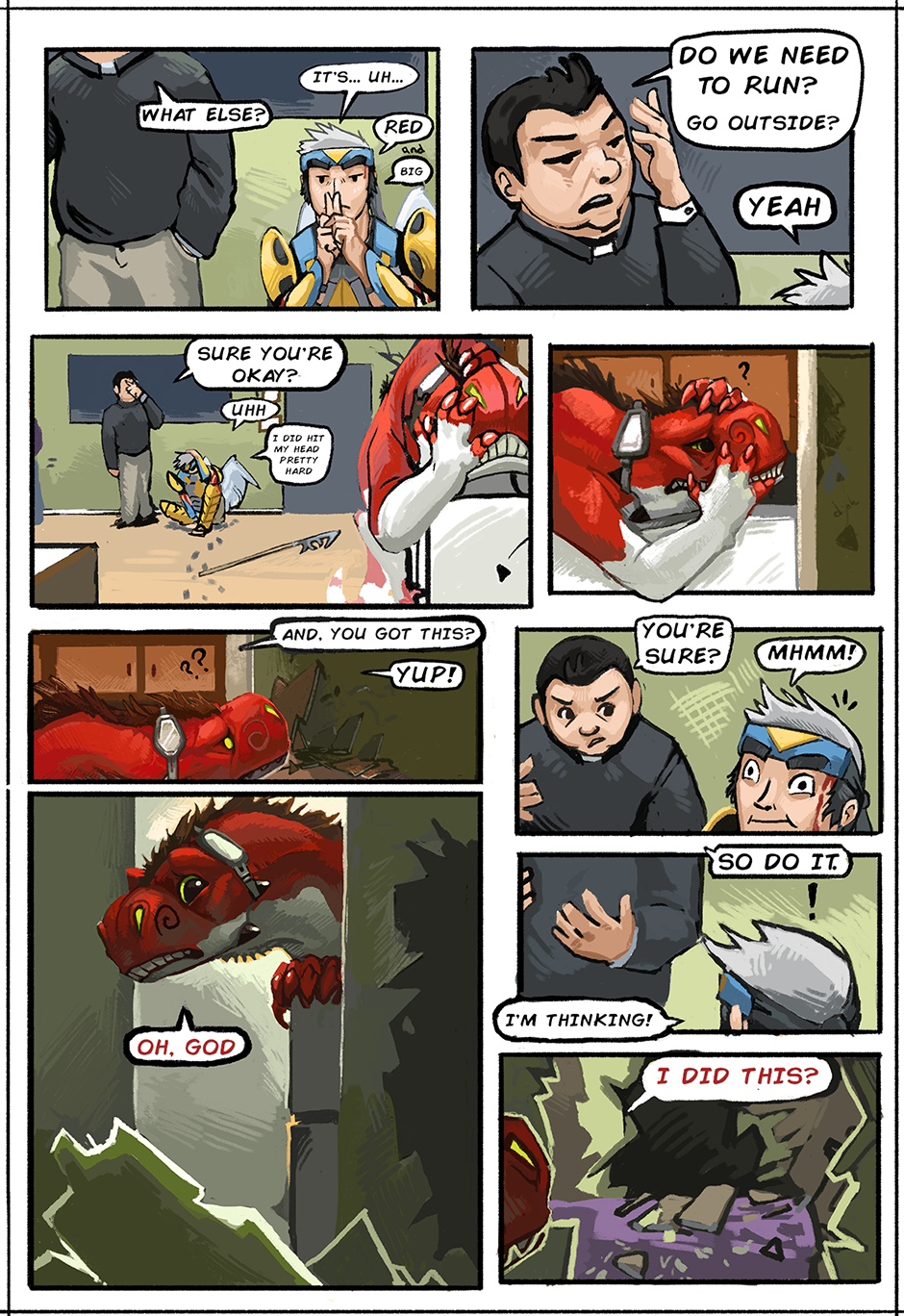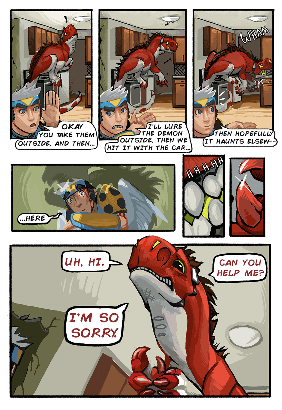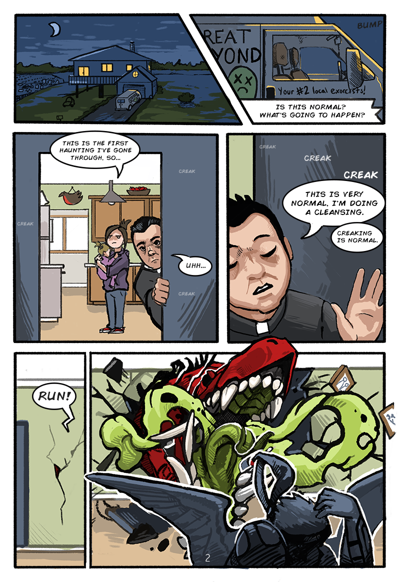 An epic clash of reality and the paranormal, centralized around an unorthodox, backwards love story. It starts with a clueless spirit trapped in the body of a massive dinosaur demon who is trying to develop her own soul while getting chased around by a pair of commercial exorcists.