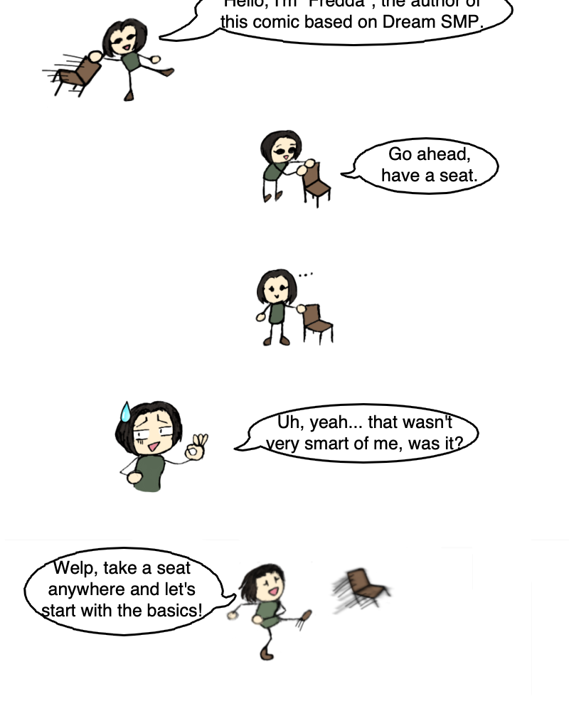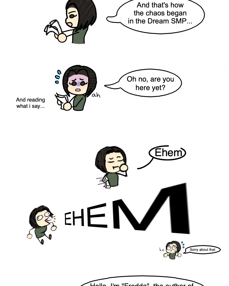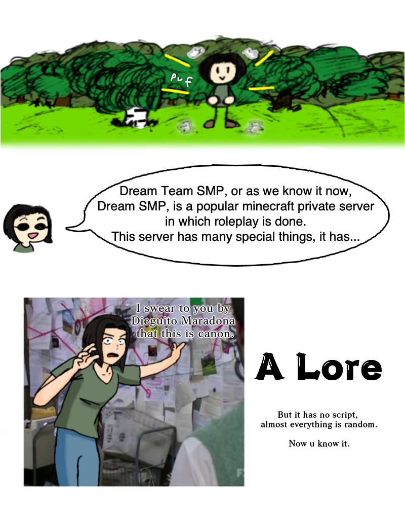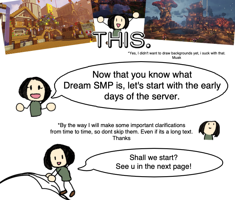 The Dream smp is something that has captured the attention of multiple people from all over the world, however, not everyone has the time, opportunity or patience to see a live show of one or two hours at the moment or later, there are even new people that although they do have a lot of free time, they don't know where to start. That's why I decided to make this comic, rather this is aimed at new users who are super late with the lore, like me, but I think anyone can read it.