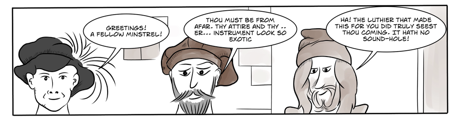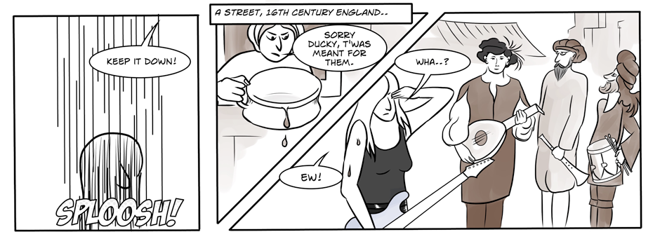 This is the first episode of the origin story. It aims to explain through the medium of a comic, how our hero met her 16th-century counterparts, an unlikely event which resulted in a cataclysmic fusion of musical styles.