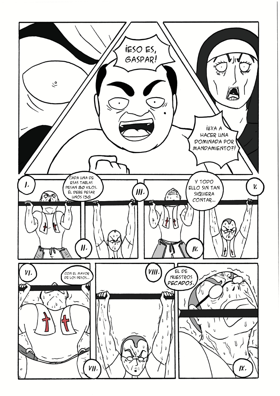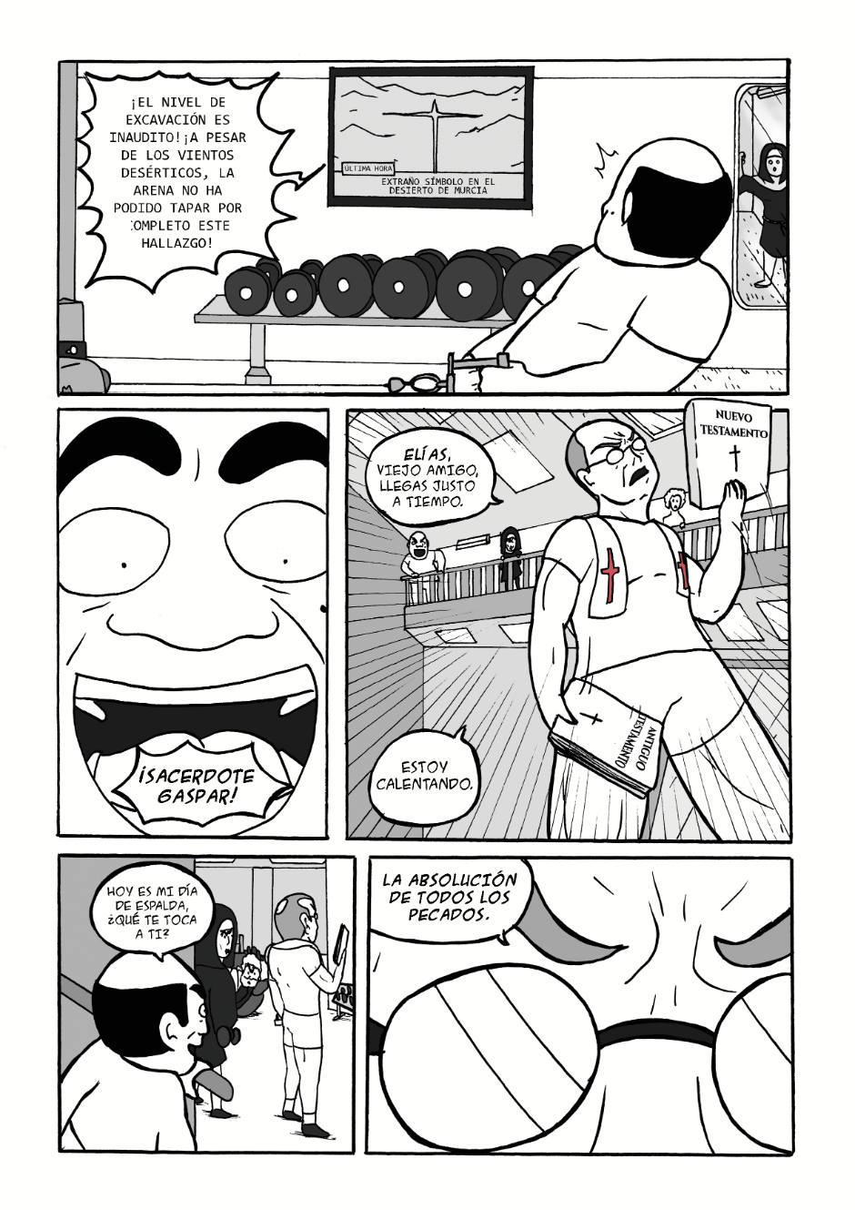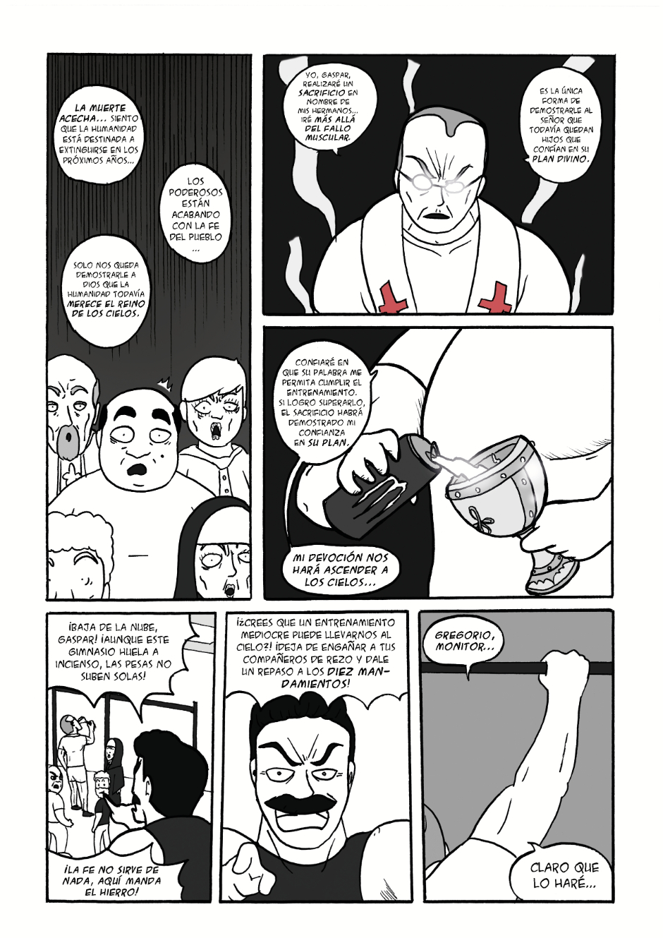 4 ejercicios. Un sacerdote culturista. Su entrenamiento decidirá el destino de la humanidad. ¿Podrá Gaspar conservar su fe durante todo el sacrificio?
