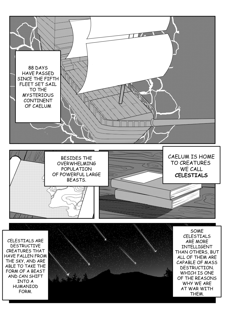 In a monster infested world, there is a battle raging on between creatures from space called Celestials and humans. Who hunt these beings of mass destruction. Join these elite hunters, as they venture through the mysterious continent of Caelum that is home to many Celestials, in a Monster Hunter inspired story.