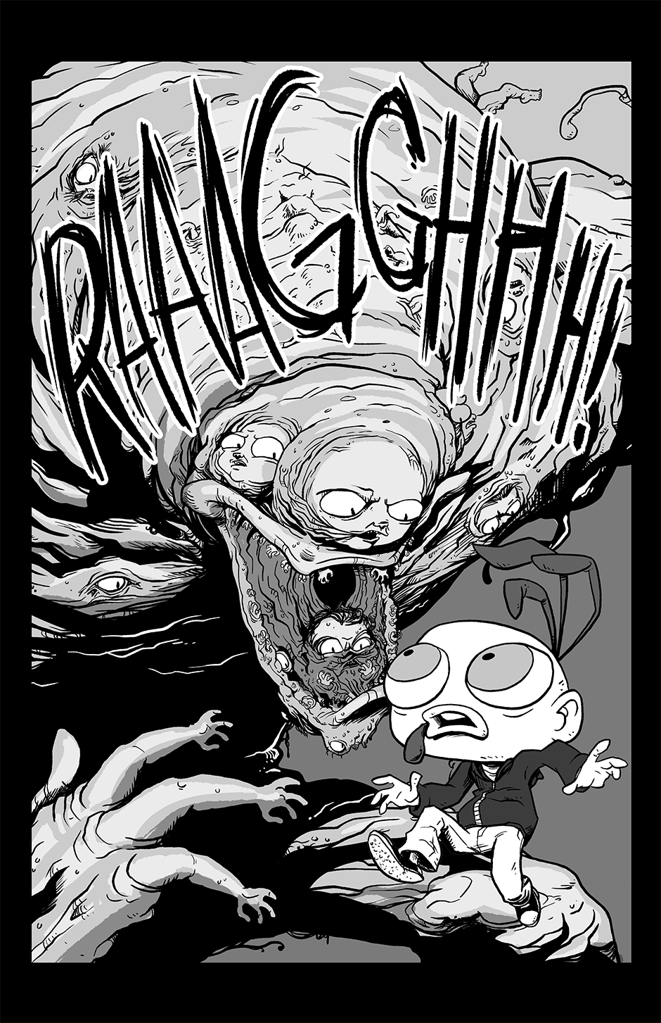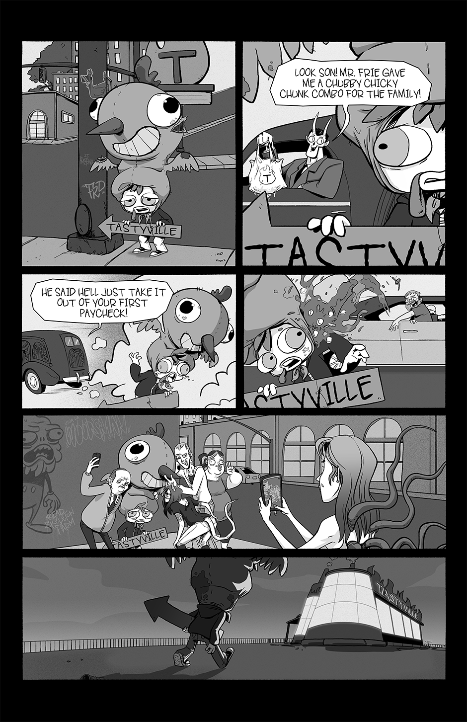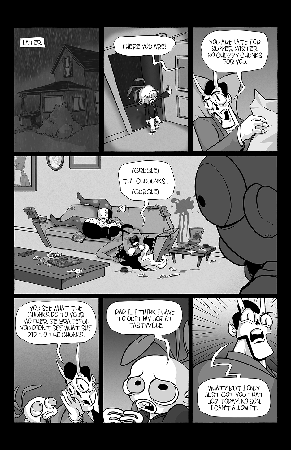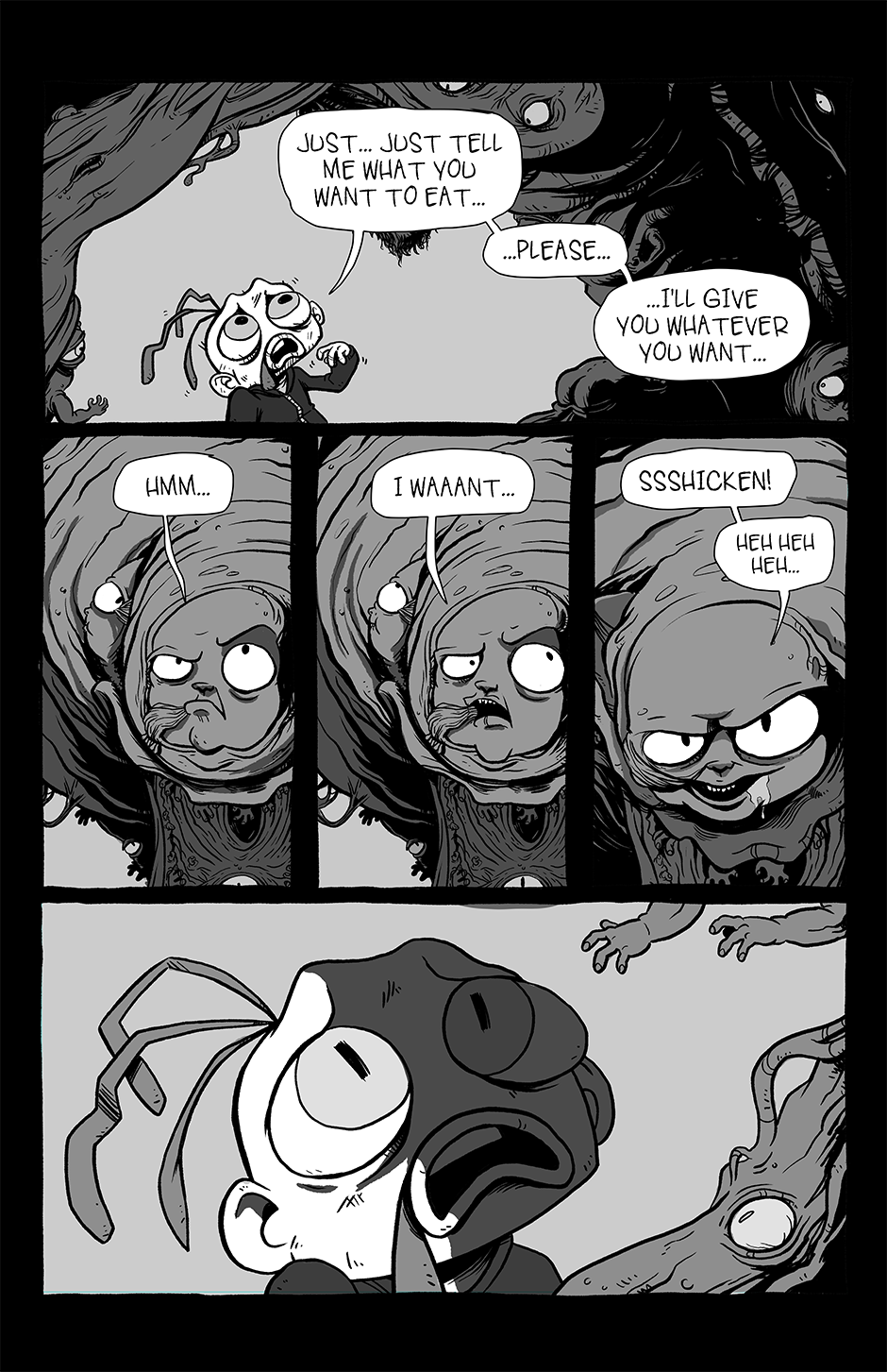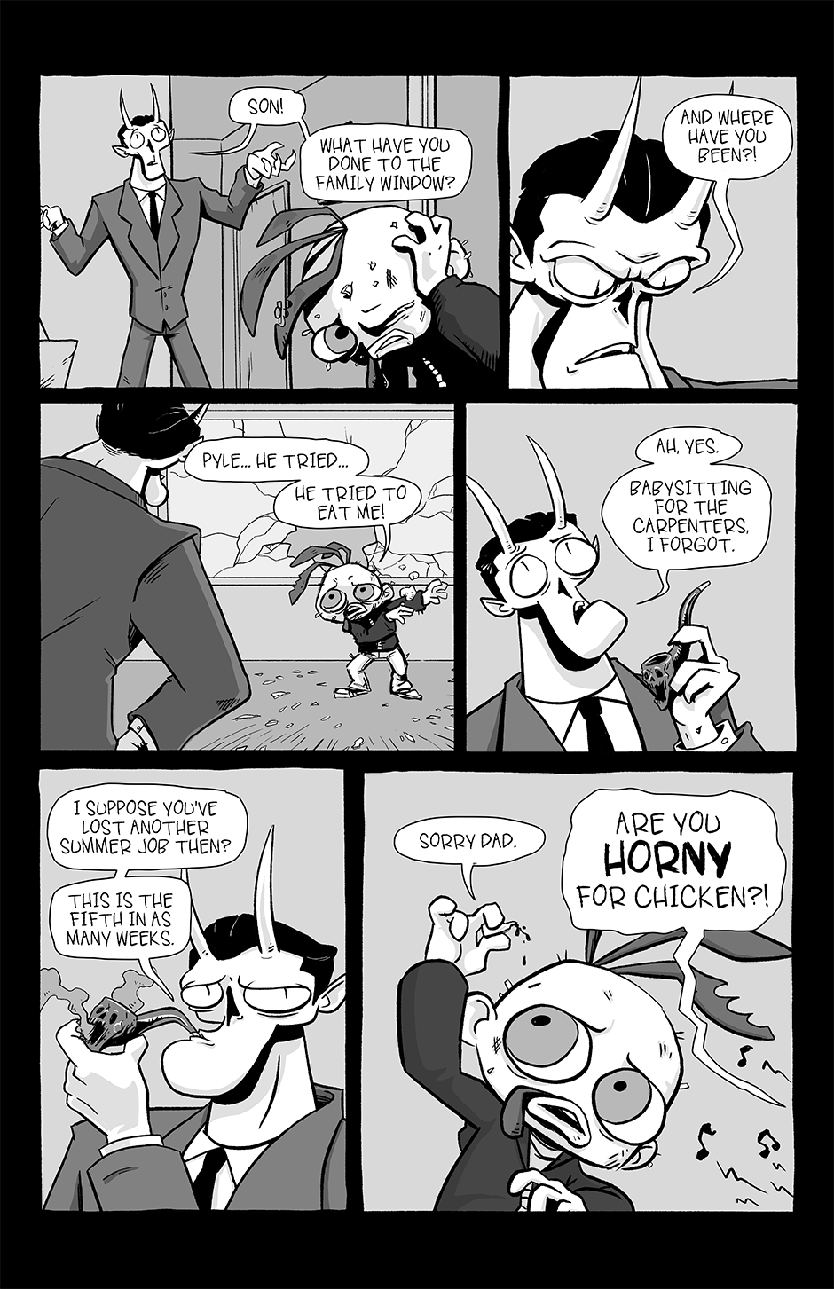 Part family drama, part goofball comedy, and part horror show, Chickenface follows the misadventures of its titular protagonist as he survives dangerous summer jobs, dysfunctional parents, and an assortment of abominations that inhabit this part-Earth, part-Hell world he's growing up in.