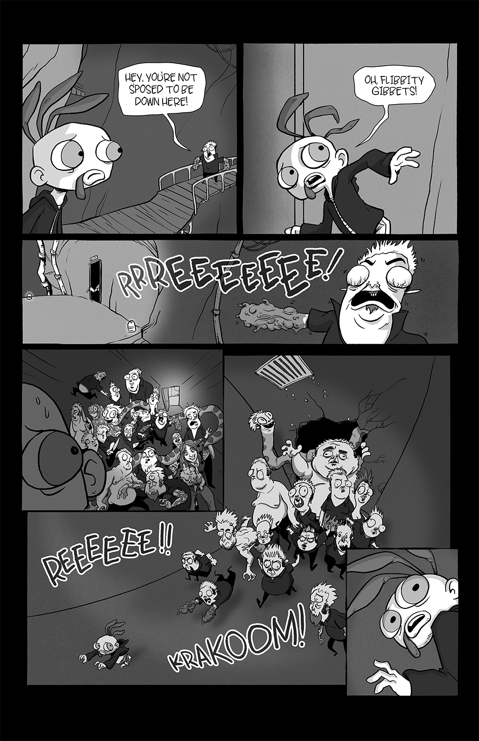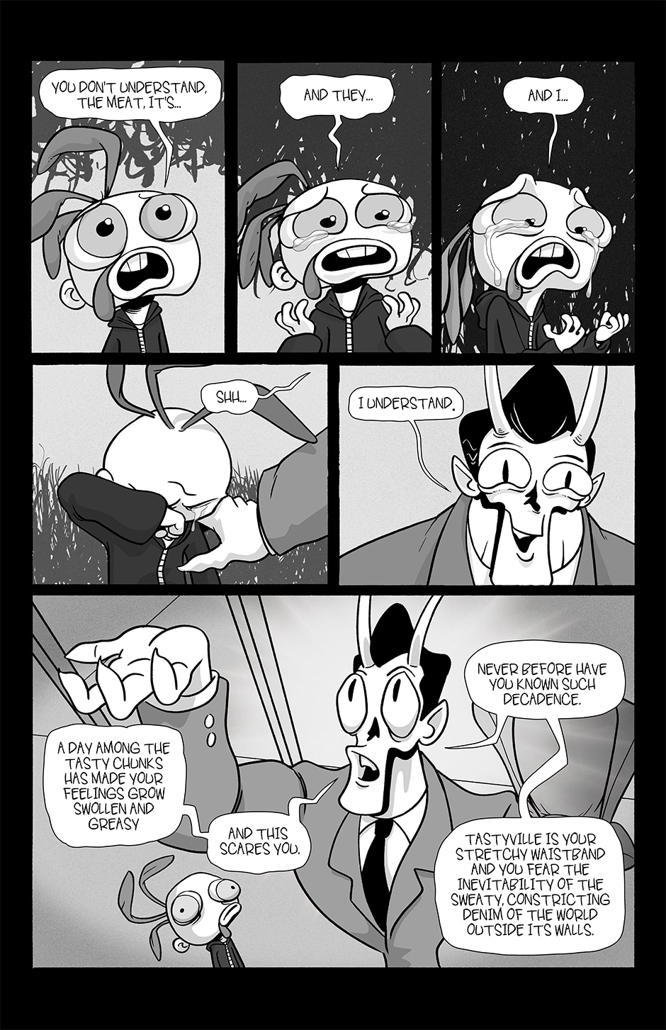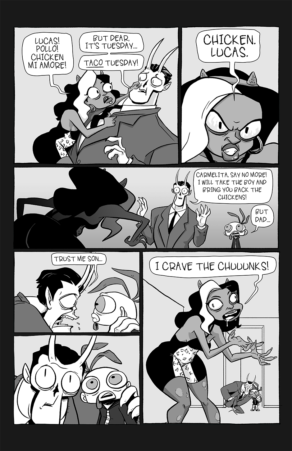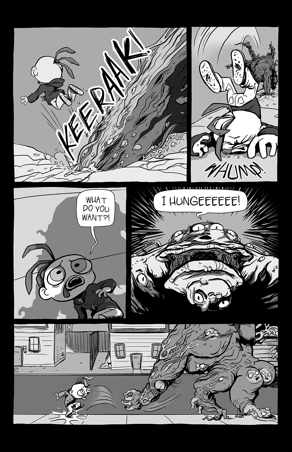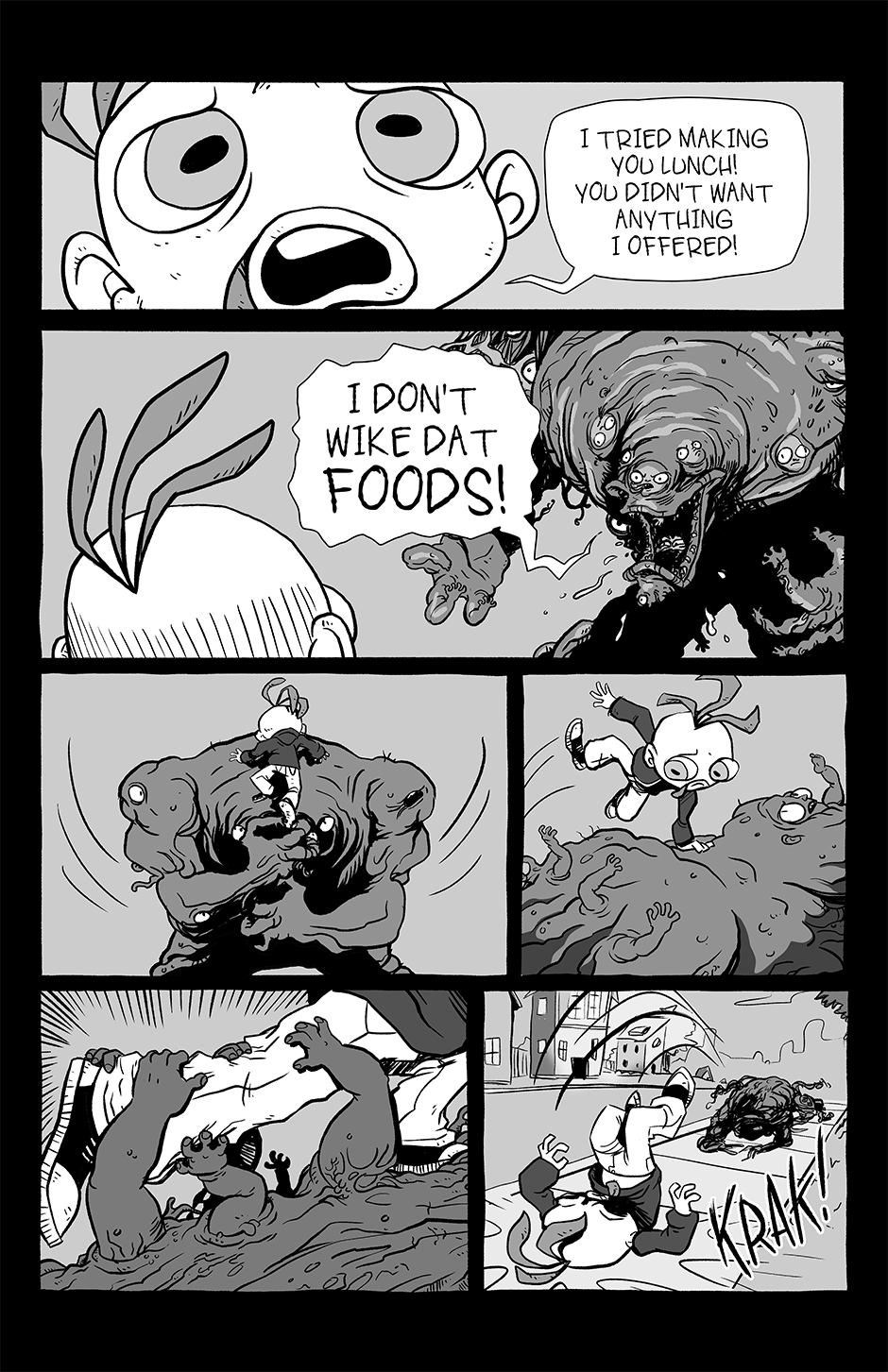 Part family drama, part goofball comedy, and part horror show, Chickenface follows the misadventures of its titular protagonist as he survives dangerous summer jobs, dysfunctional parents, and an assortment of abominations that inhabit this part-Earth, part-Hell world he's growing up in.
