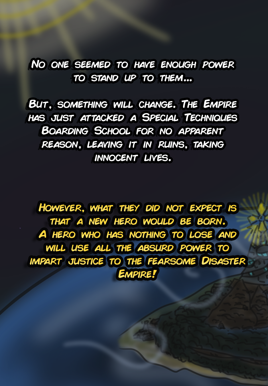 Join this peculiar band of fools in their journey to save their planet from the tyranny of the Disaster Empire. Absurd action and epicity just as crazy, will they achieve their goal?
