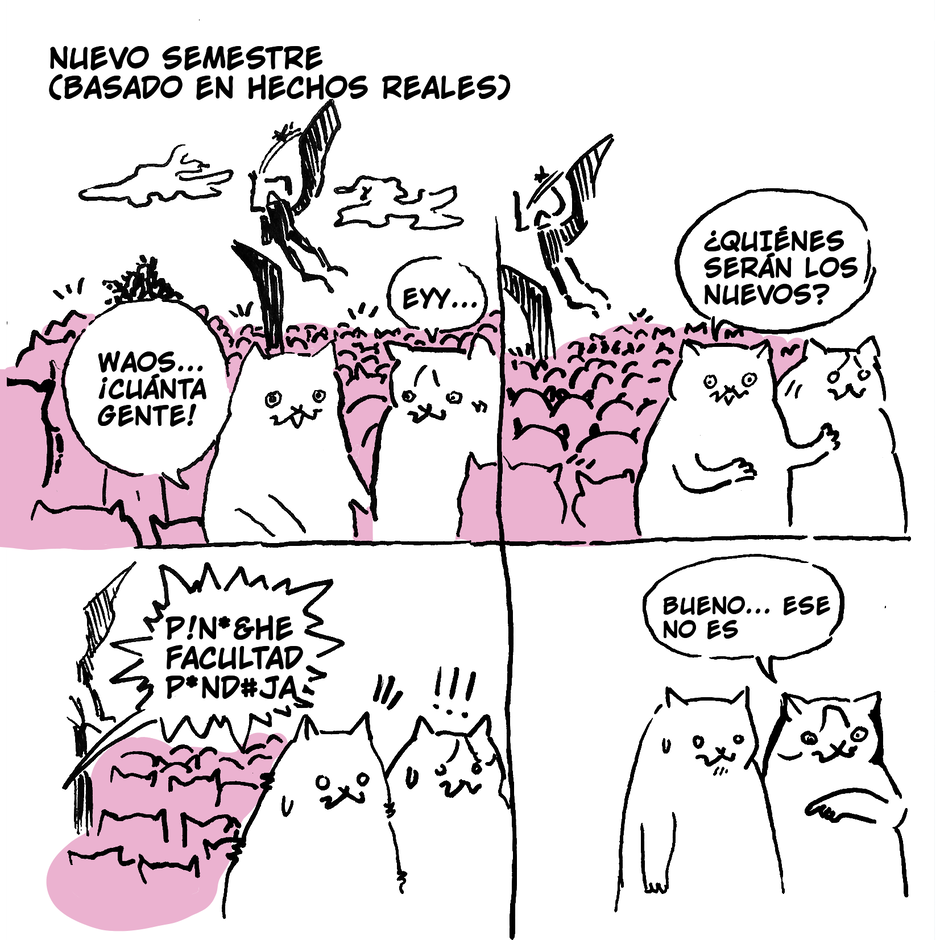 Viñetas sobre la vida universitaria. Las vivencias de los gatos se inspiran en mi experiencia como estudiante de Física en la UNAM, aunque hay chistes locales, sus desventuras pueden resonar con todos.