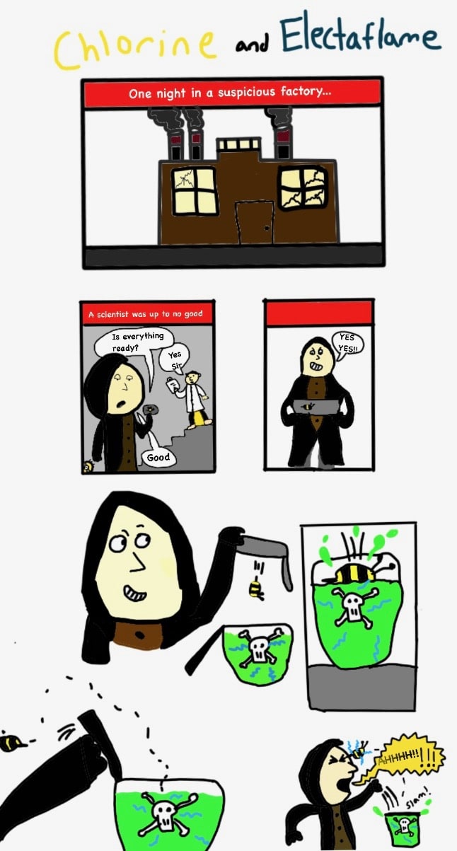 But, Jay got stung by a bee, and that bee was experimented on by Killerstreak; the villain, and got electrical forces and Chlorine; the chemical in it. So, when that bee stung Jay, he got the electric power the bee had! So, in conclusion, Chlorine and Electaflame has the same powers except for their one special power. But, they still work together to stop Killerstreak, there one rival...