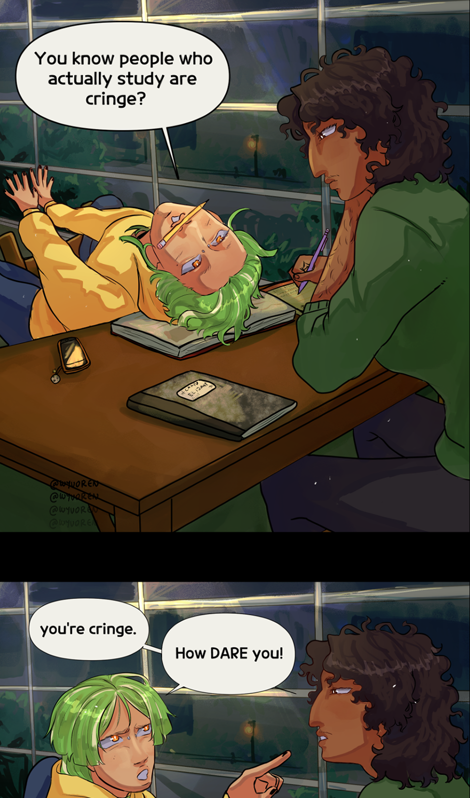 These guys are why I have to wear headphones in the library fr- (Yay you're making more comic!!! ^^)