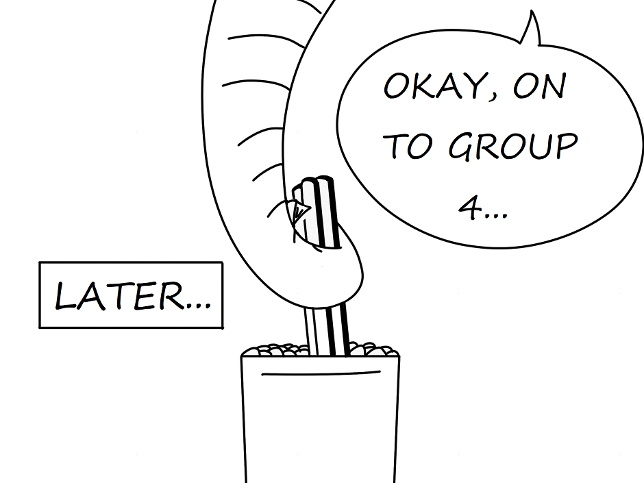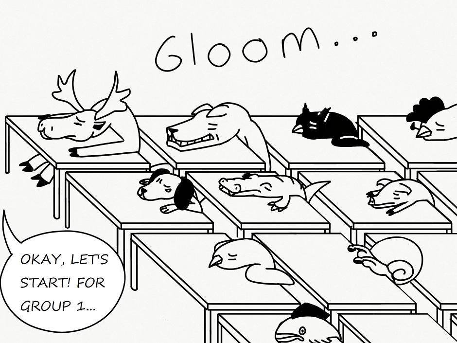 I love the clean linework! And the philisophical turtle? (Or whatever it may turn out be.) Very true observation on the "random team" gloom