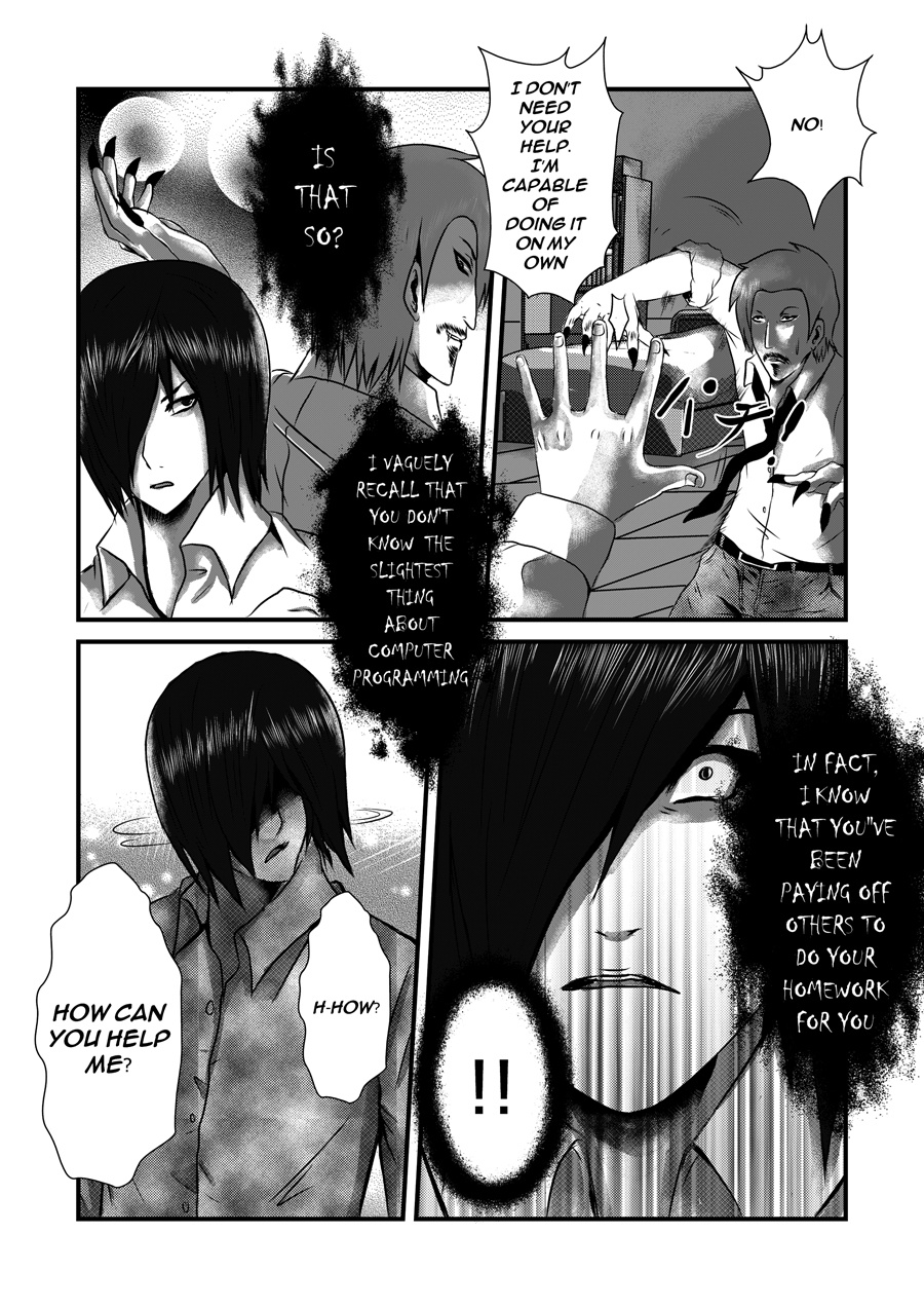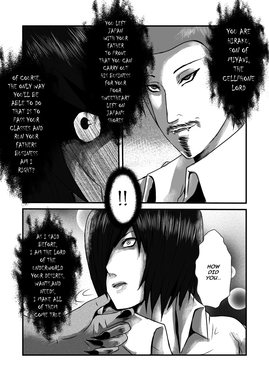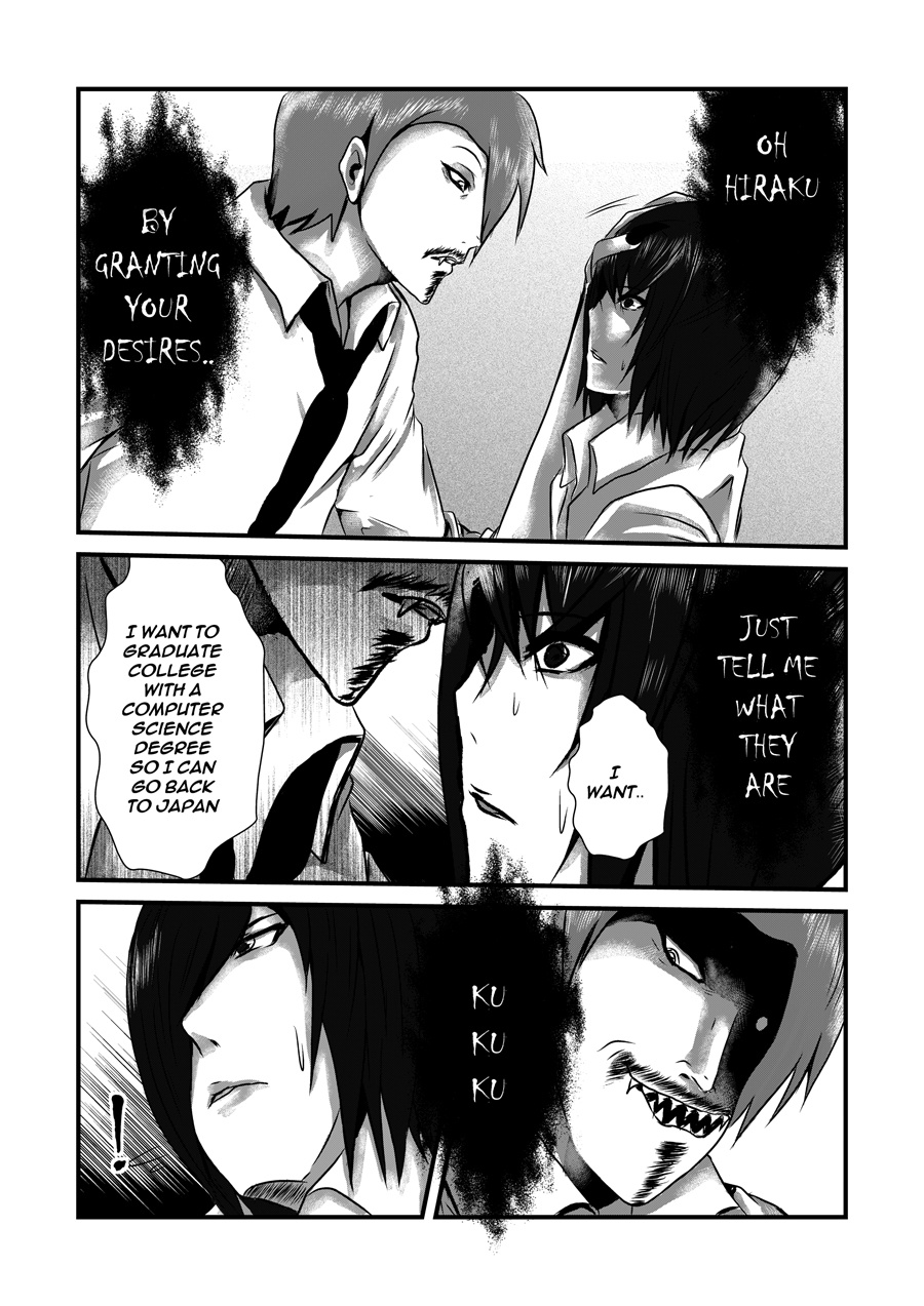 This manga is read from "RIGHT to LEFT" A young student who wants to achieve something and makes a deal with a demonic force but there is always a catch.