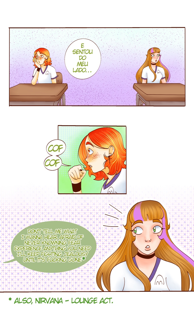 Sofia has anger management issues that led to her expulsion and, because of this, she was transferred in the middle of the school year. At her new school, she just wants to go unnoticed. However, her attention is caught by Dan, impossible not to notice with their neon orange hair. Unable to distinguish their gender, but not caring about it, Sofia finds herself interested and ends up joining Dan's friend group - which happens to be one of the main bands at this new and unconventional school. Amid tears, laughter, losses and overcoming challenges, Sofia and Dan, with their bittersweet lives, grow closer when Dan shares thoughts about their personal discovery - something that Sofia made them reflect upon. They soon discover a unique musical connection that brings them even closer together, finding in each other comfort and safety for their own personal matters.