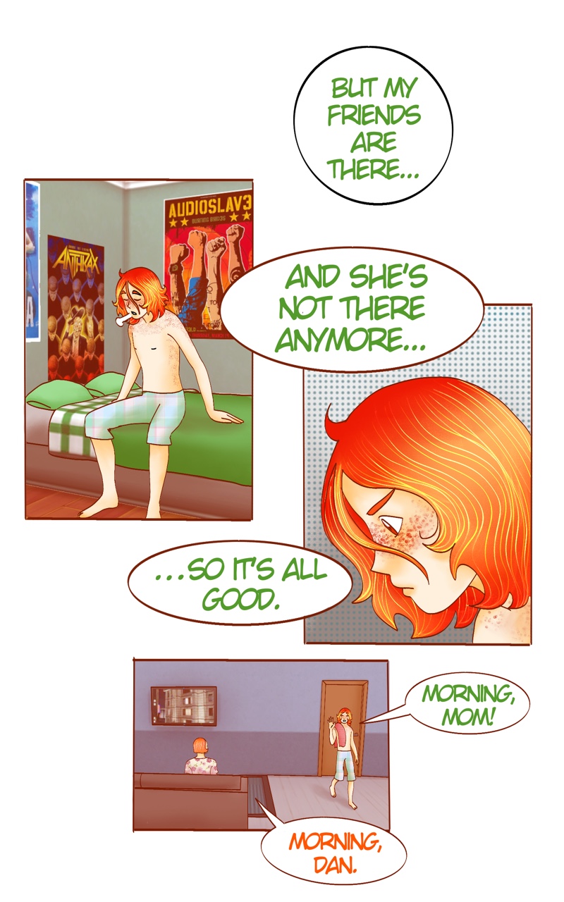 There, Dan meets Sofia, a recent transfer after the break. Dan is captivated by her when they hear her sing Nirvana, and even though they no longer want to get involved with anyone, with Sofia in their life, maybe Dan’s heart won’t stay broken forever, after all.