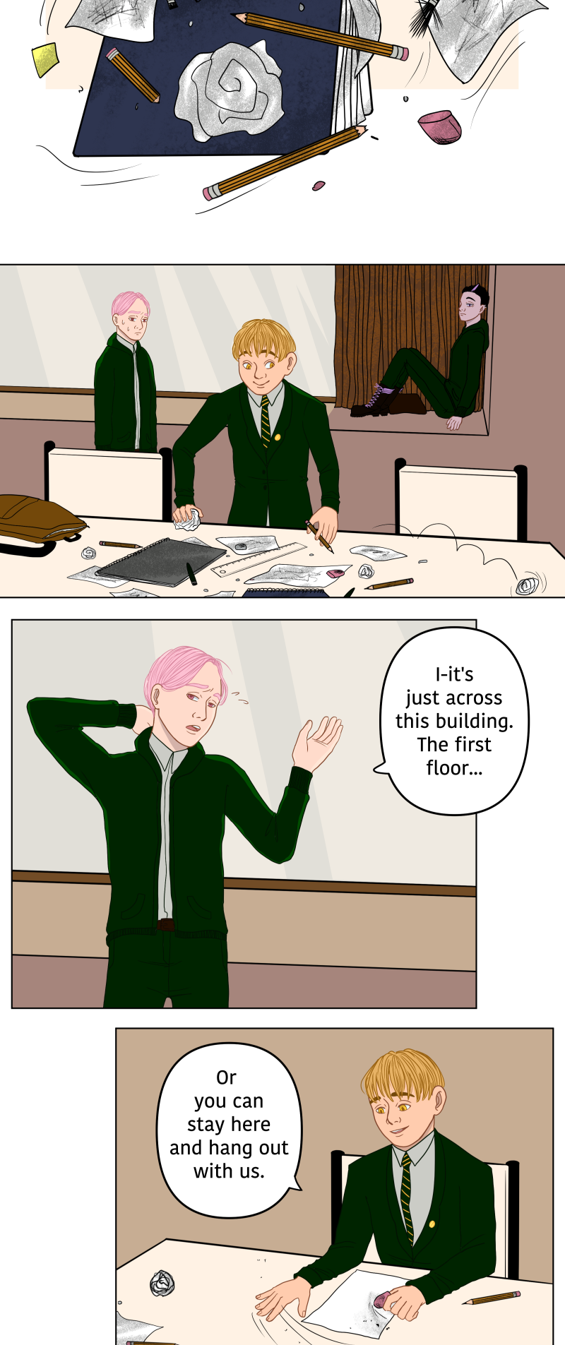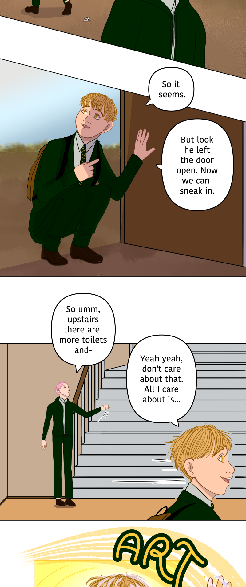 As of today (21.2.24) it's been exactly 10 years since I created the characters for this comic. Since that day Ken and pals have been visiting my sketchbooks and been more or less in the back of my mind. In 2020 I began to seriously craft a story for these boys and to keep things short, here we are. At the beginning of an adventure.