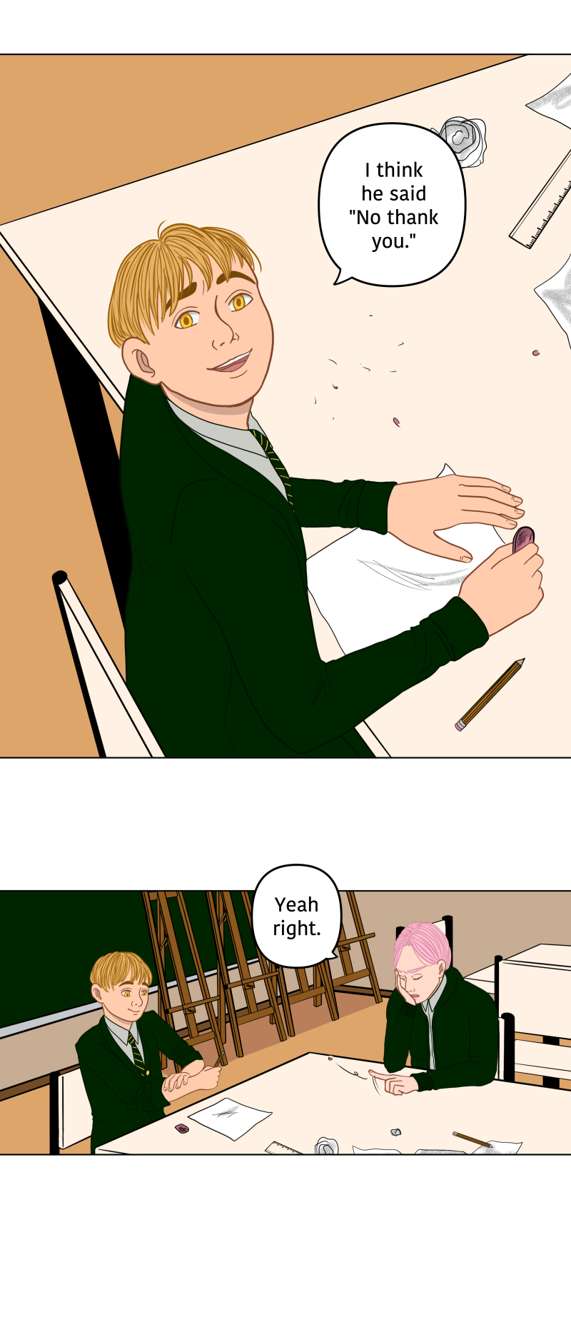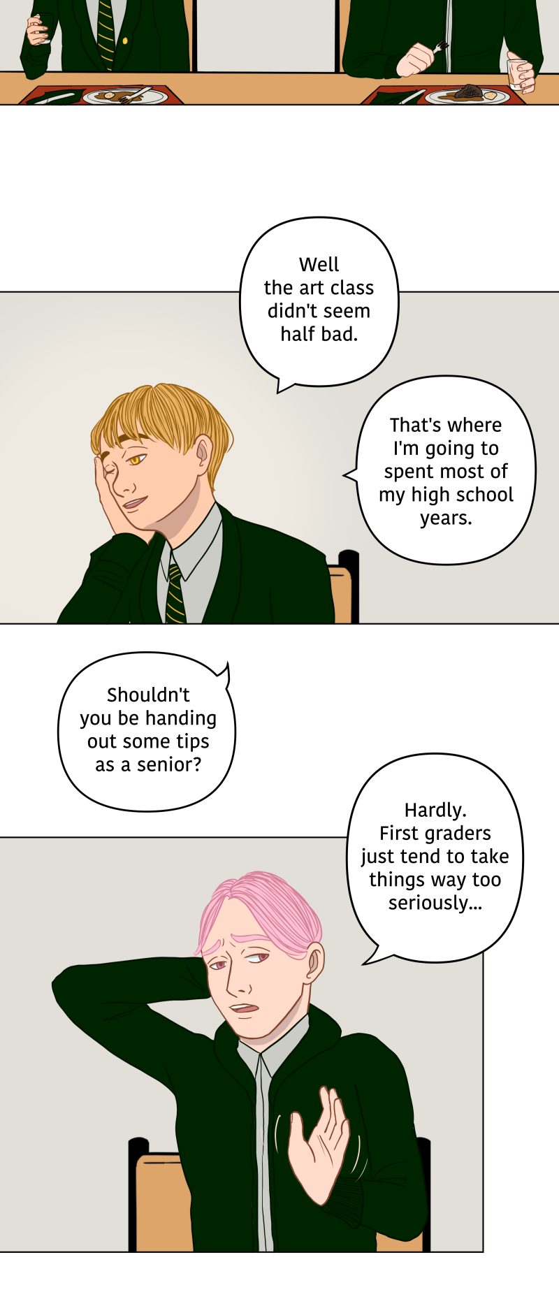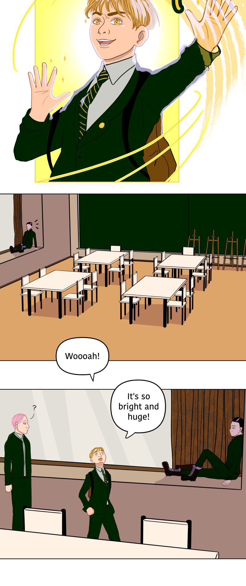 While his best friend Austin is right there besides him these two will butt heads throughout high school with each other and other magical boys alike.