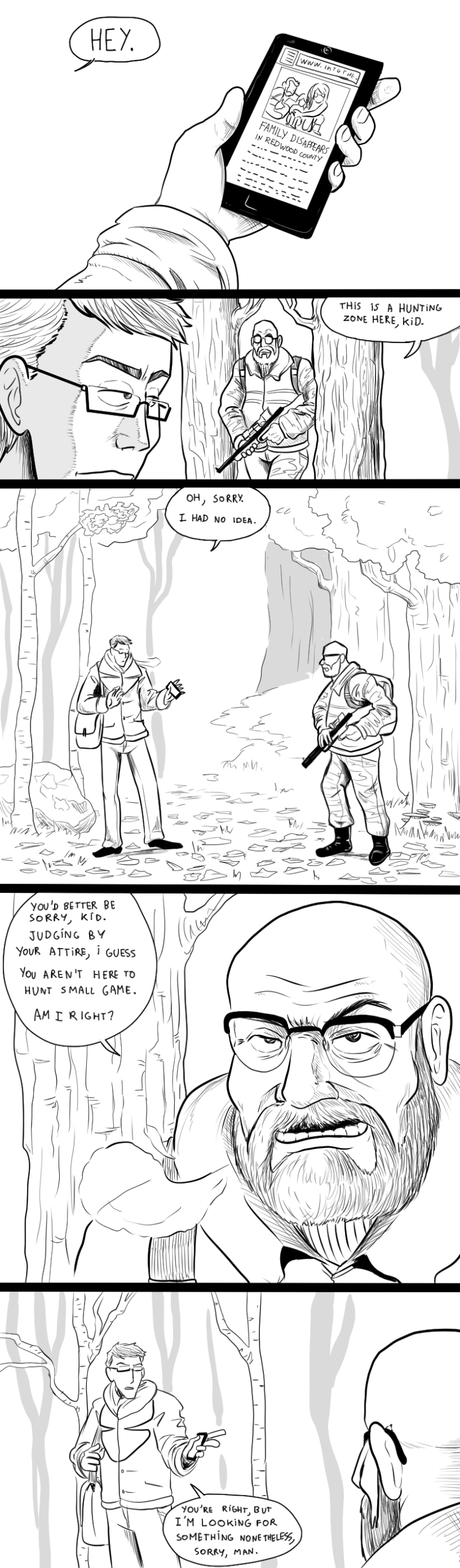 I mean... I cant feel too bad or him when he got warned by everything. Super creepy and nice art!
