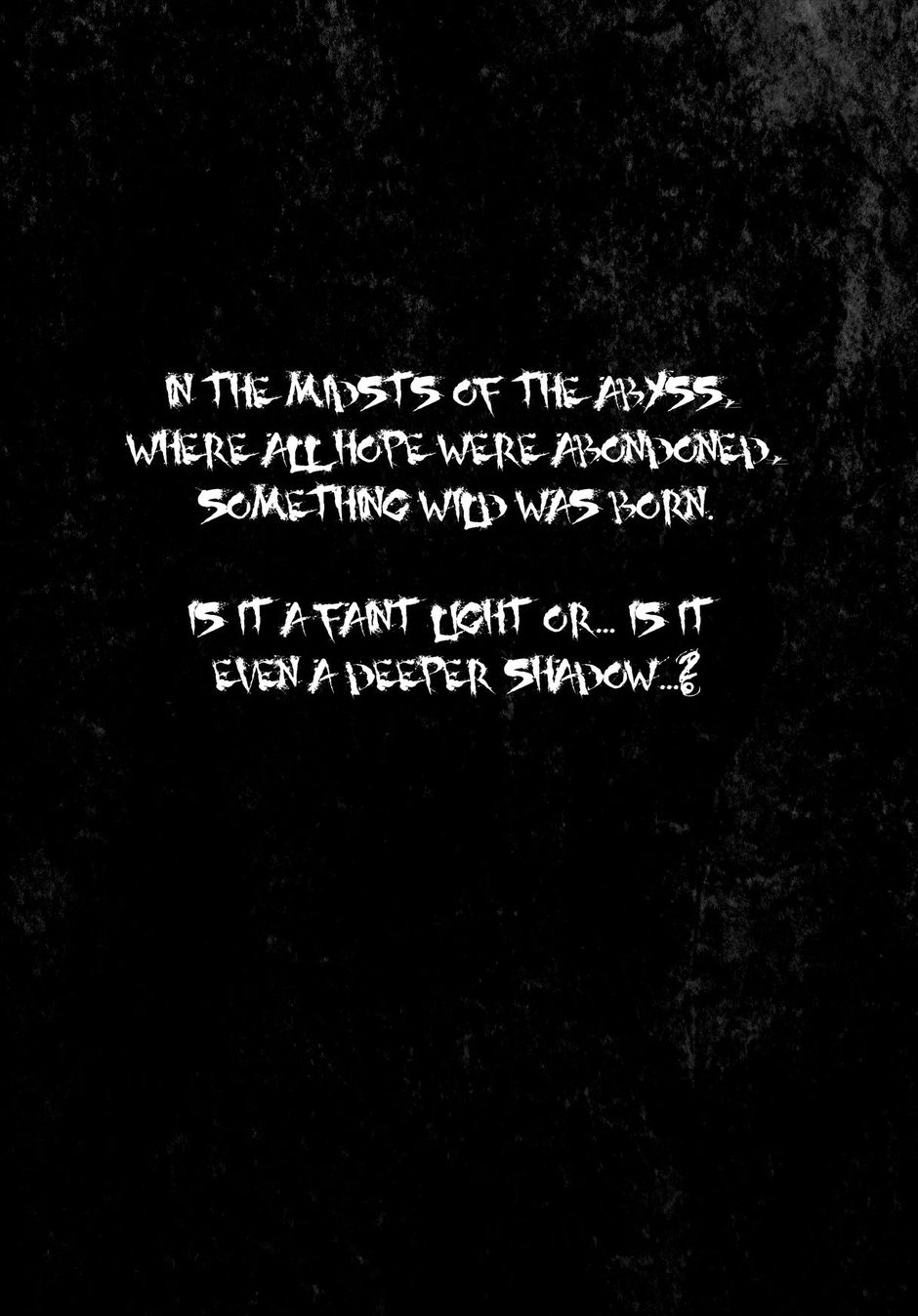"In the midsts of the abyss where all hope were abandoned, something wild was born. Is it a faint light or... is it even a deeper shadow?