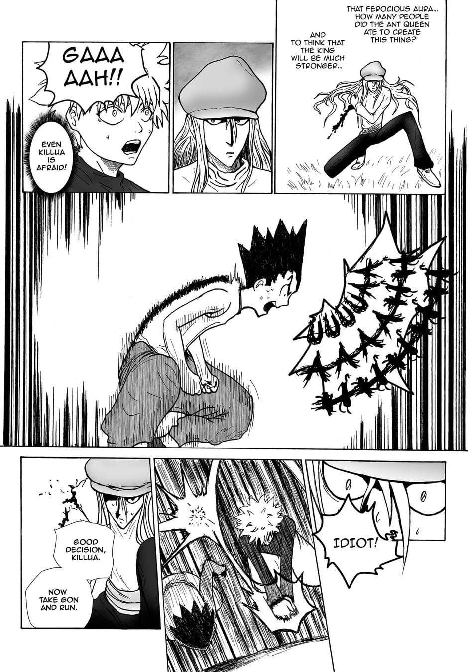 This is a fan-made Hunter x Hunter manga. Obvious spoilers so I'd recommend to read/watch the original first. Story takes place from the beginning of Chimera Ants' arc, first chapter shows possible scenario for a Kite vs Pitou fight.
