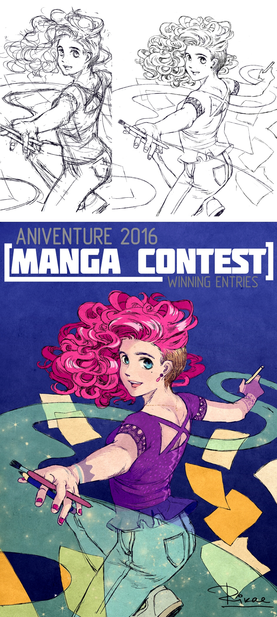 A very quick glimpse into the making of the cover for Aniventure 2017' Manga contest Winners book. (Yes, it is for 2017, that was an earlier mockup, lol )