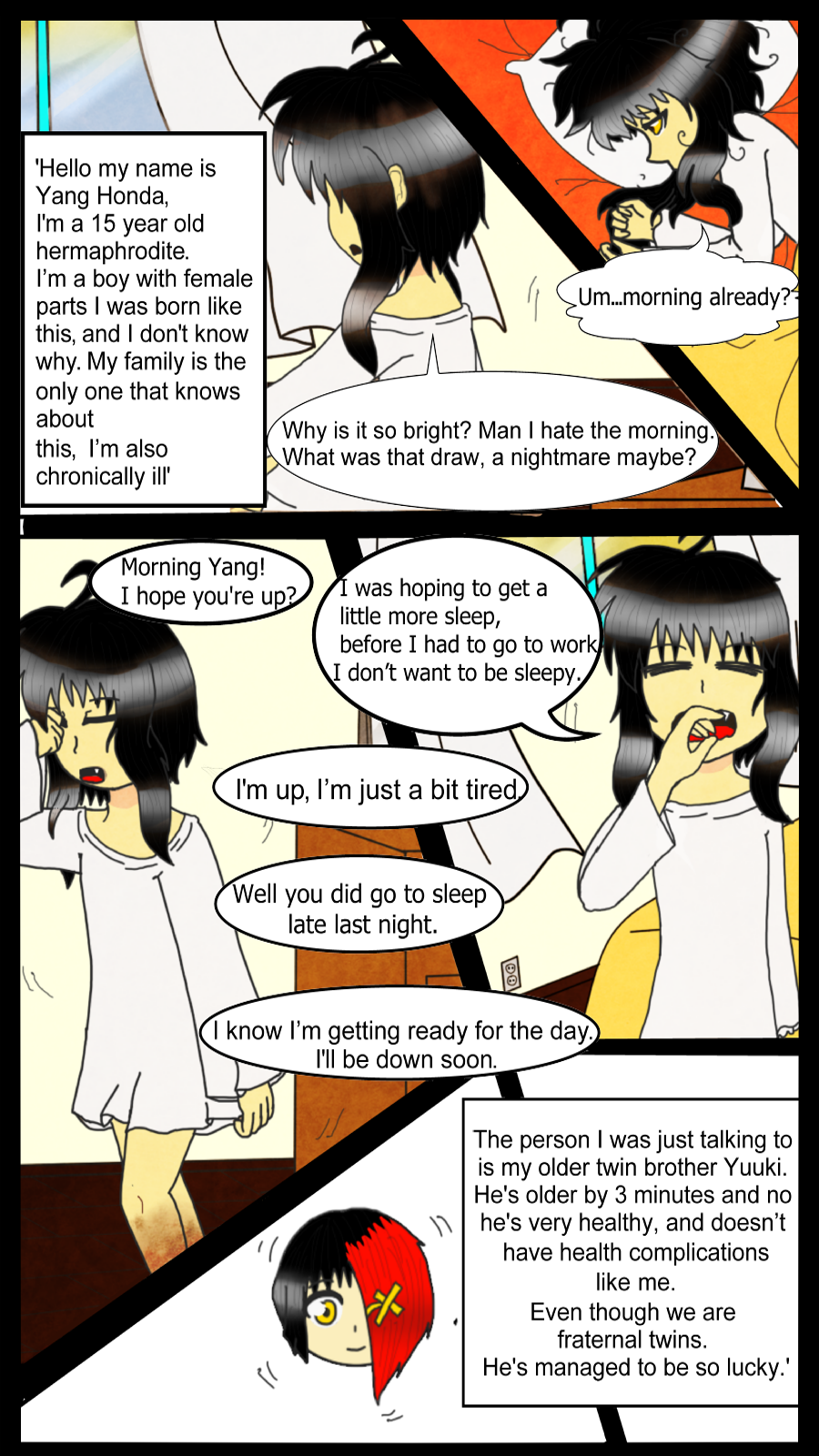 Yang Honda is a 15 year old sickly human, that goes through his day to day life until It turns into a super natural Adventure. When its discovered that he's a hybrid with god like powers. He's now being pursued by demons as well as angels due to a long forgotten prophecy that yang was born into, Since both of them need his powers to create their own new world, both parties will go to Extreme Measures to seek out their goals but a demon named angel Kirkland isn't on anyone side and just want to keep the hybrid to himself. will the prophecy come true or well angel really have the hybrid to himself.