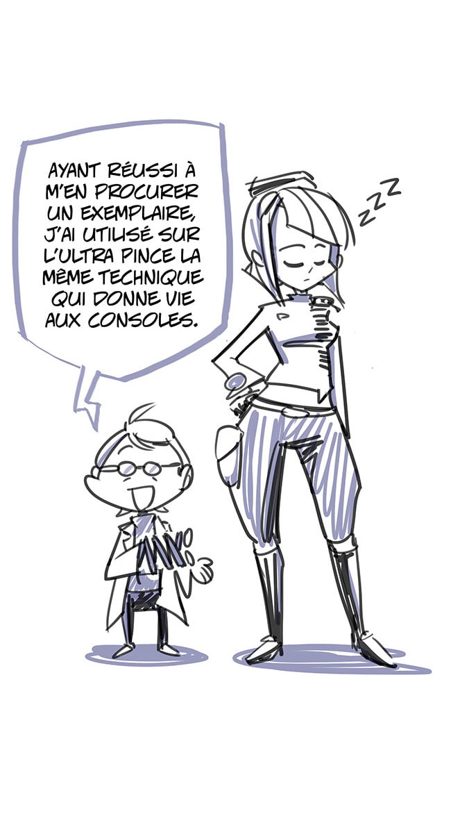 Le professeur Péritel et la Console Girl N.O.S. nous parlent des origines de sa main mécanique, inventée il y a bien longtemps par Notendo.