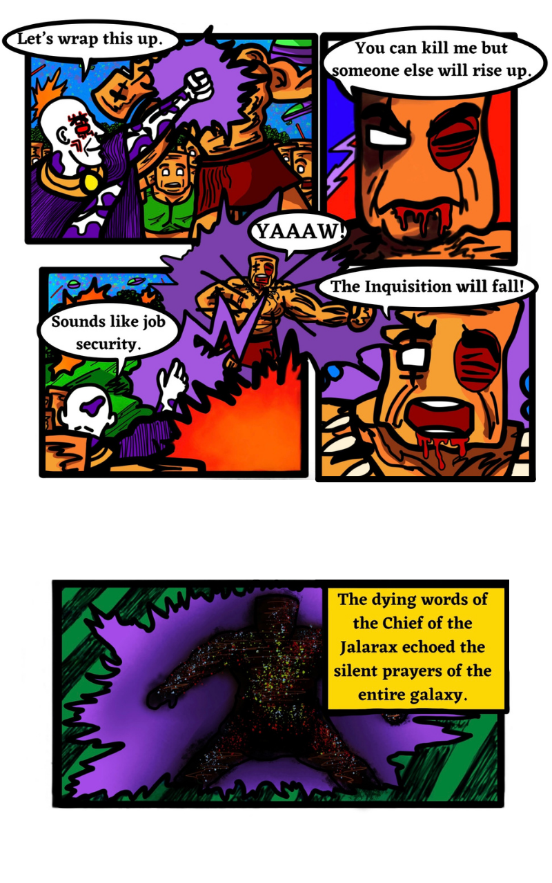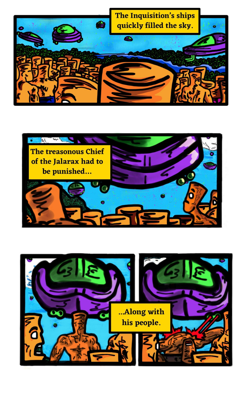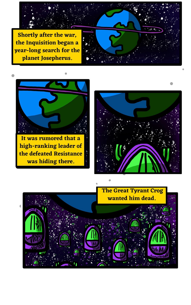 The Galaxy Has Been Conquered By A Wicked Tyrant! It is up to a small group of rebels to fight back against the villainous Crog and his Inquisition. Along the way, they meet a vengeful alien and a fast-talking general with a passion for violence. The ragtag team must make uneasy alliances, battle countless soldiers, and lead a revolution. Together, they hope to save the galaxy...