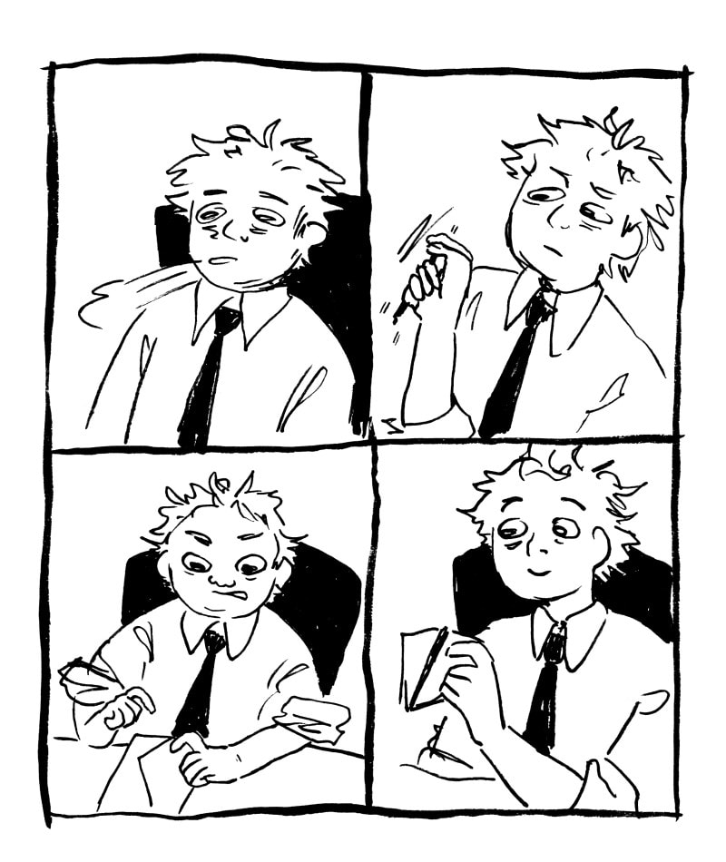 I drew this for grandpapier's 24 hours comic day back in december 2020. The rules said to draw a 24 pages comic within 24 hours using a maximum of 24 different words. It was quite a challange, the kind and amazing @rotenkehl helped me scan and edit the pages before I ran out of time.