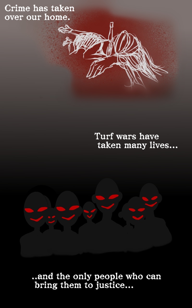 Crime riddles the streets of Japan, turf wars on every corner. The police no longer have the skill or equipment to deal with the new and improved criminals. Their only option? You guessed it. The Crime Busters, a highly skilled group of people track down and "take care" of cases no human could muster. ----Read Left to Right----