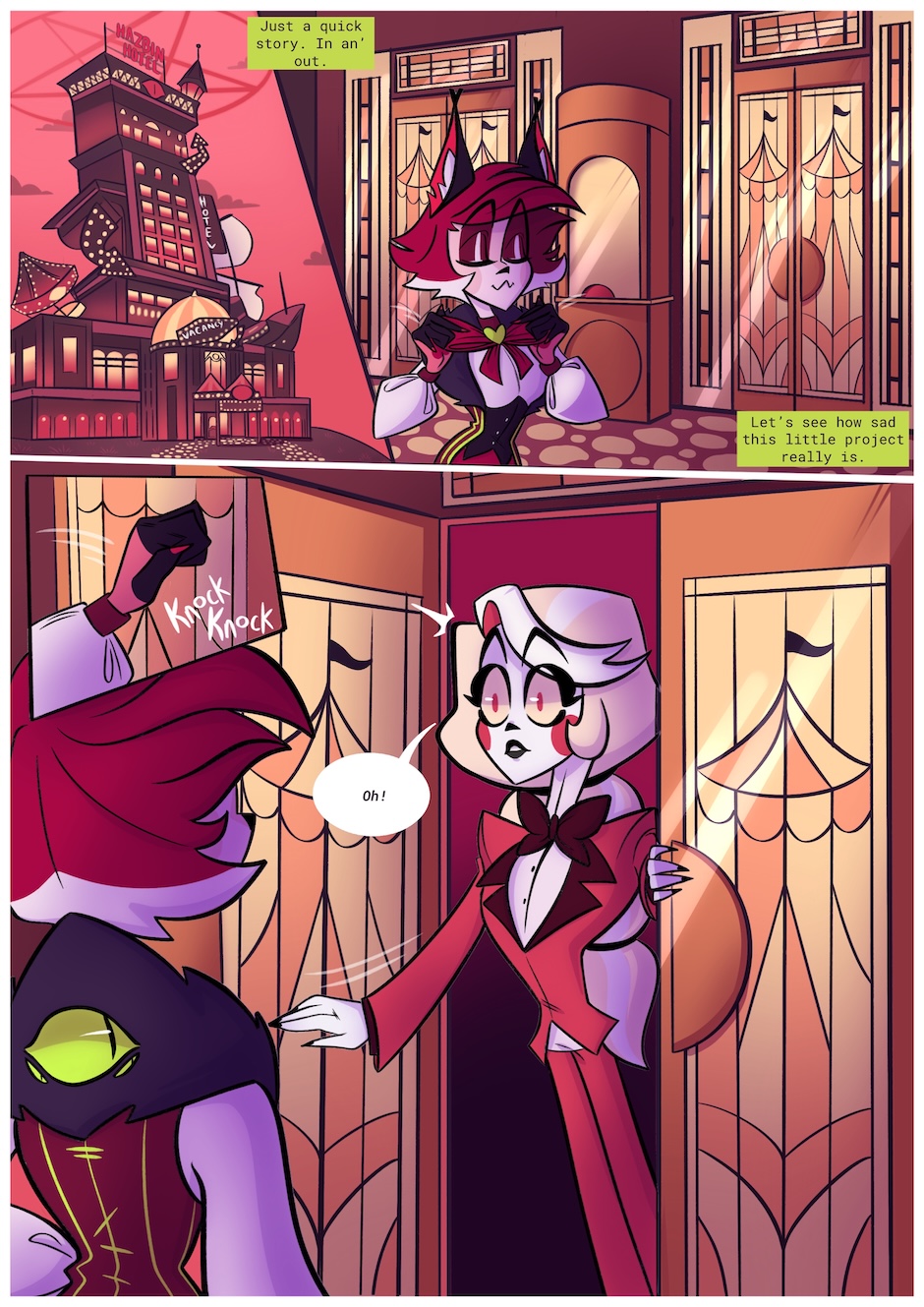 Crimson & Ink is a fictional work based on Hazbin Hotel and uses characters owned by Vivienne Medrano. I do not claim ownership of the characters found in the Hazbin Hotel series. Characters not found within Hazbin Hotel are my own creation.