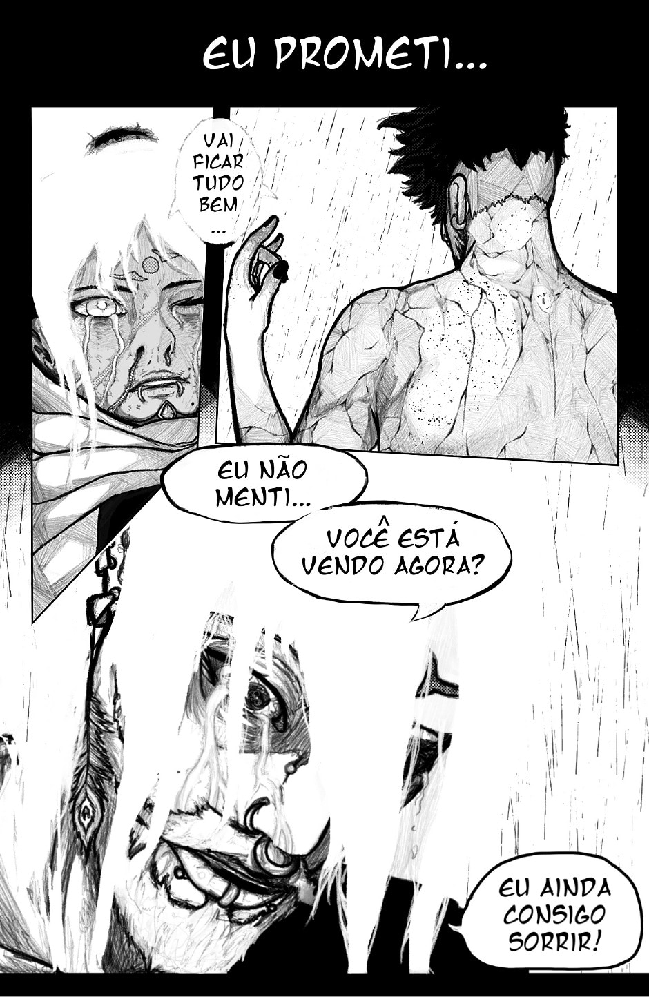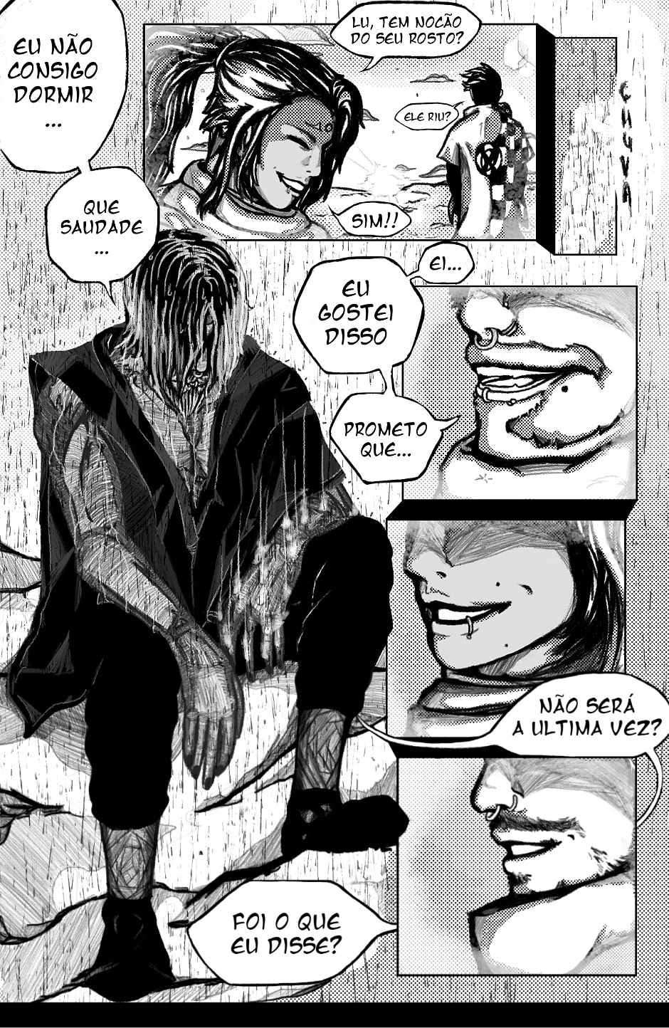 Sob memórias dolorosas, um homem debaixo da chuva revive um trauma que cravou uma expressão sombria permanente em seu rosto.
